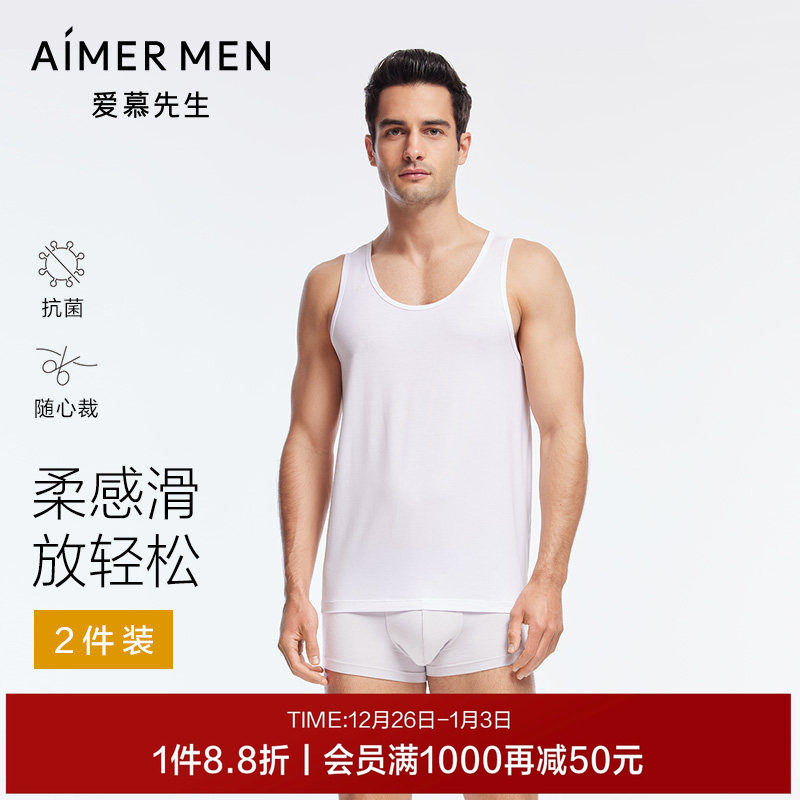 【2件装】爱慕先生HELLO系列秋冬轻薄莫代尔男士抗菌打底跨栏背心