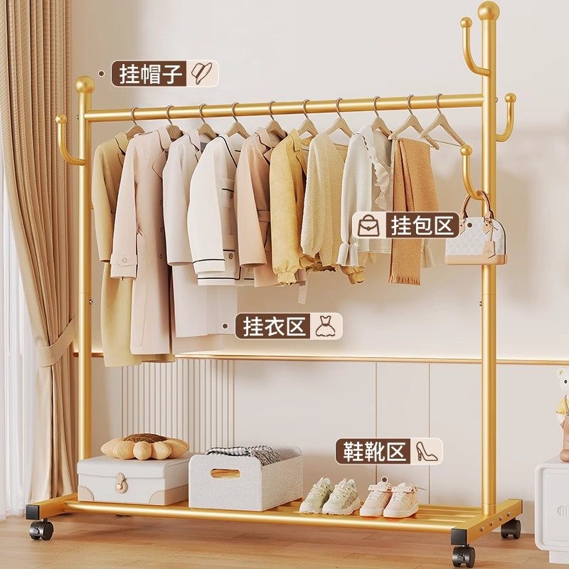 挂衣架落地卧室家用晾衣架室内阳台凉衣服落地杆式架子简易衣帽架