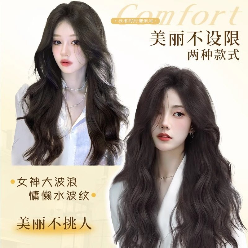假发女长发全头套式仿真人发自然整顶长卷发慵懒水波纹中分假发套