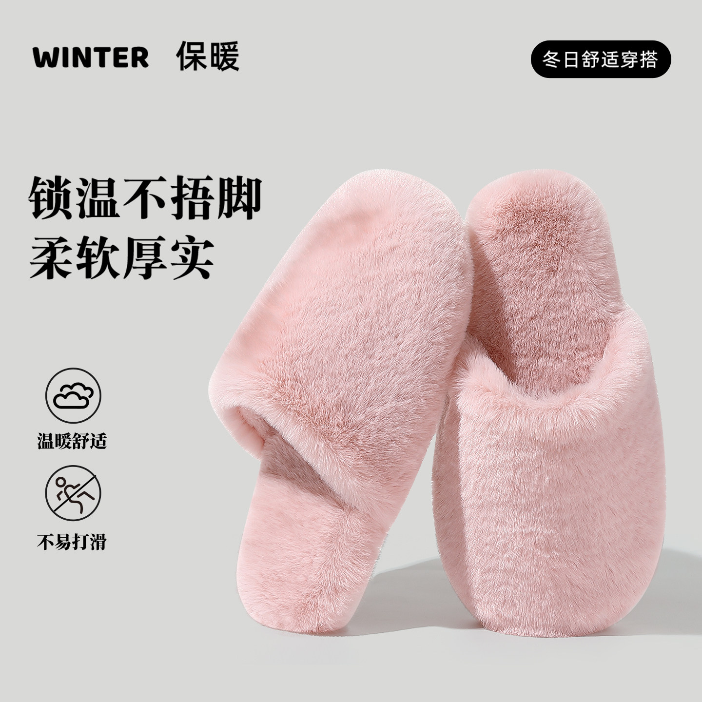 朴西棉拖鞋女士秋冬季厚底简约保暖室内居家用软底防滑情侣棉拖男