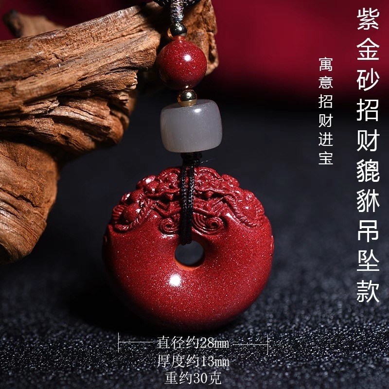 天然朱砂貔貅平安扣吊坠儿童挂件护身符项链父亲节礼物招财紫金砂