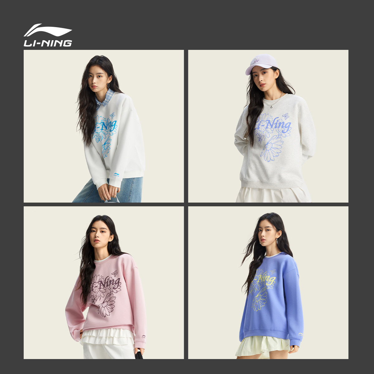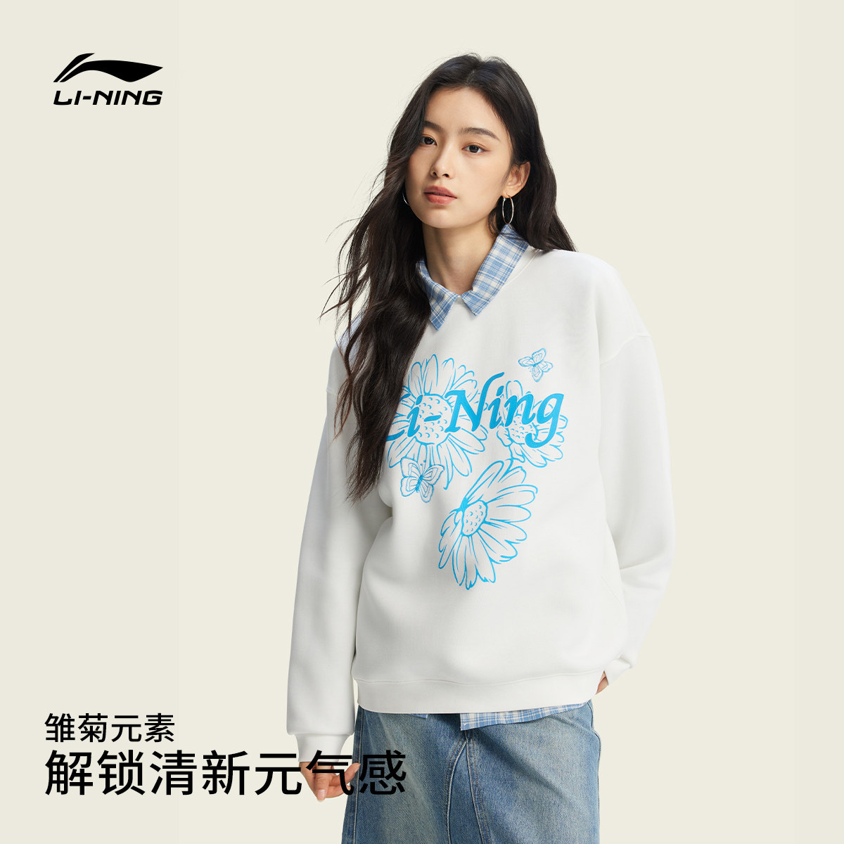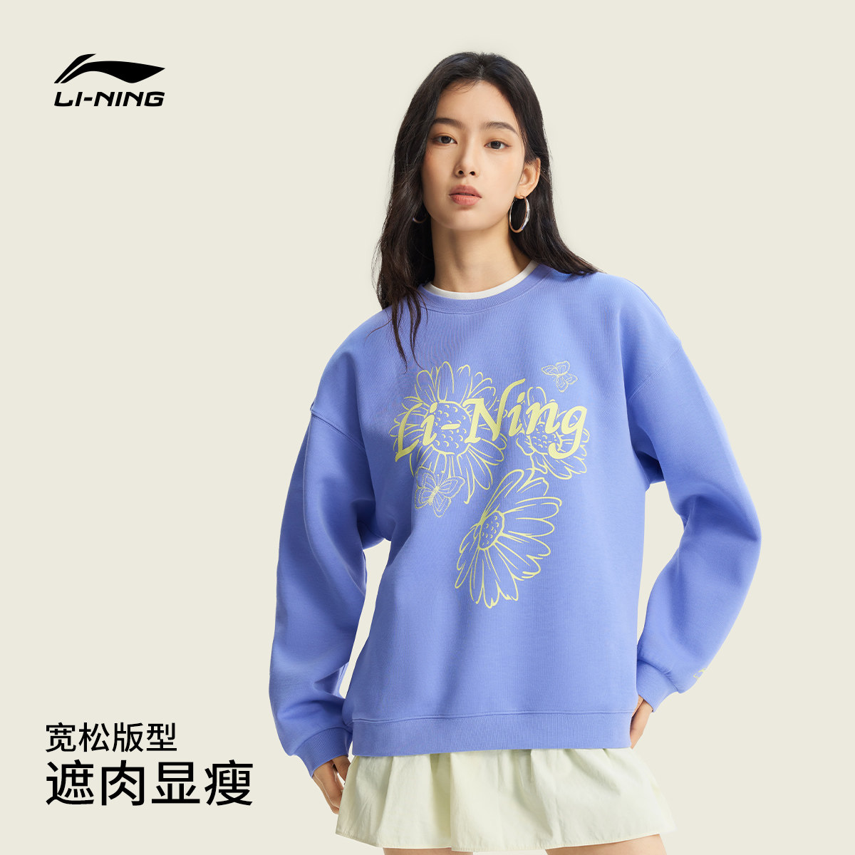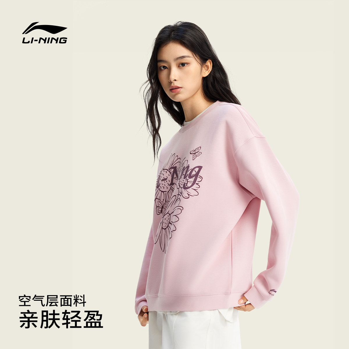 李宁卫衣女士春季2026新款女装套头衫长袖圆领上衣休闲针织运动服