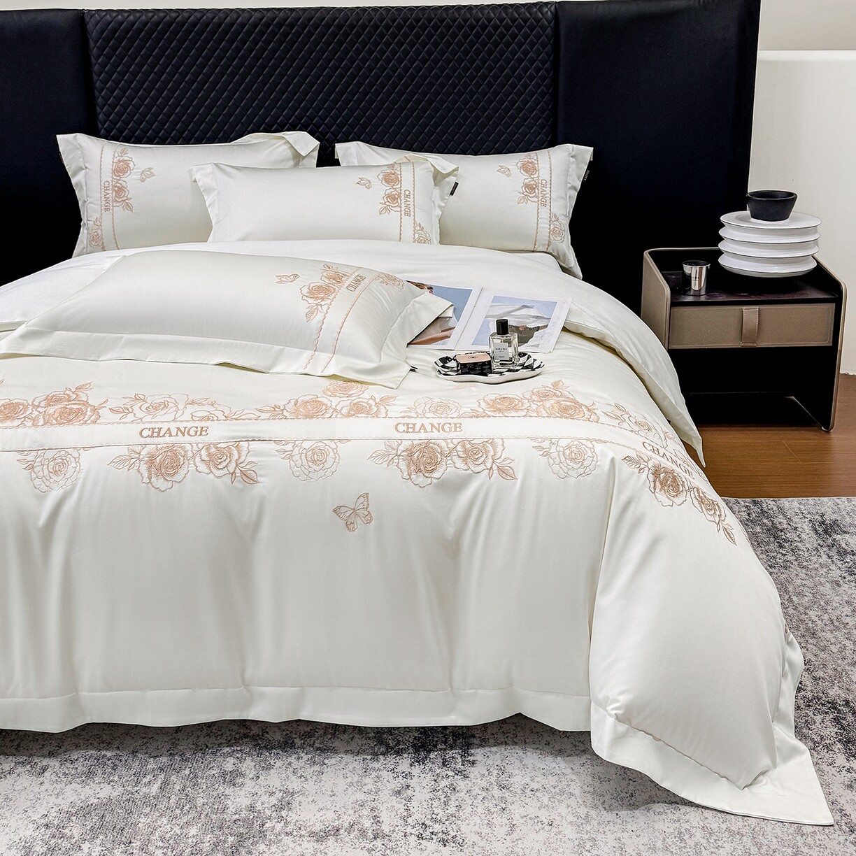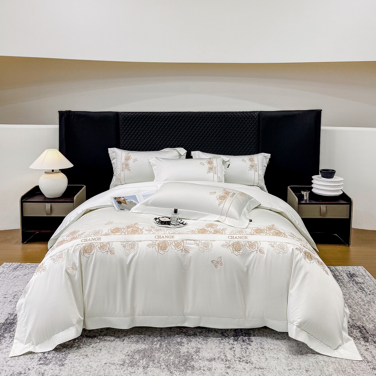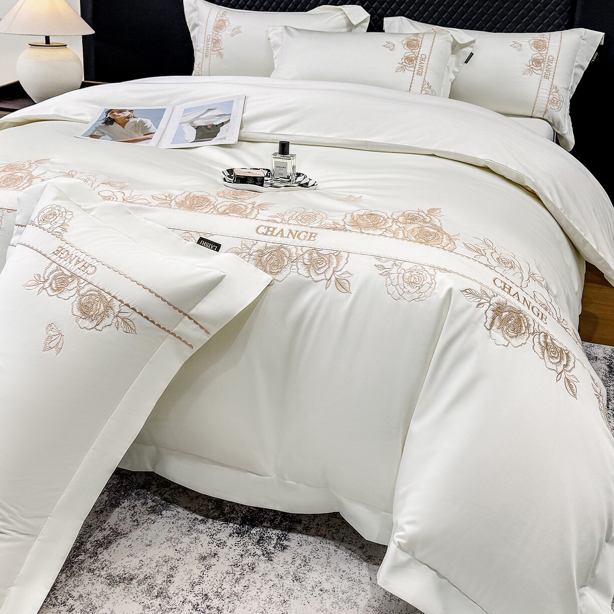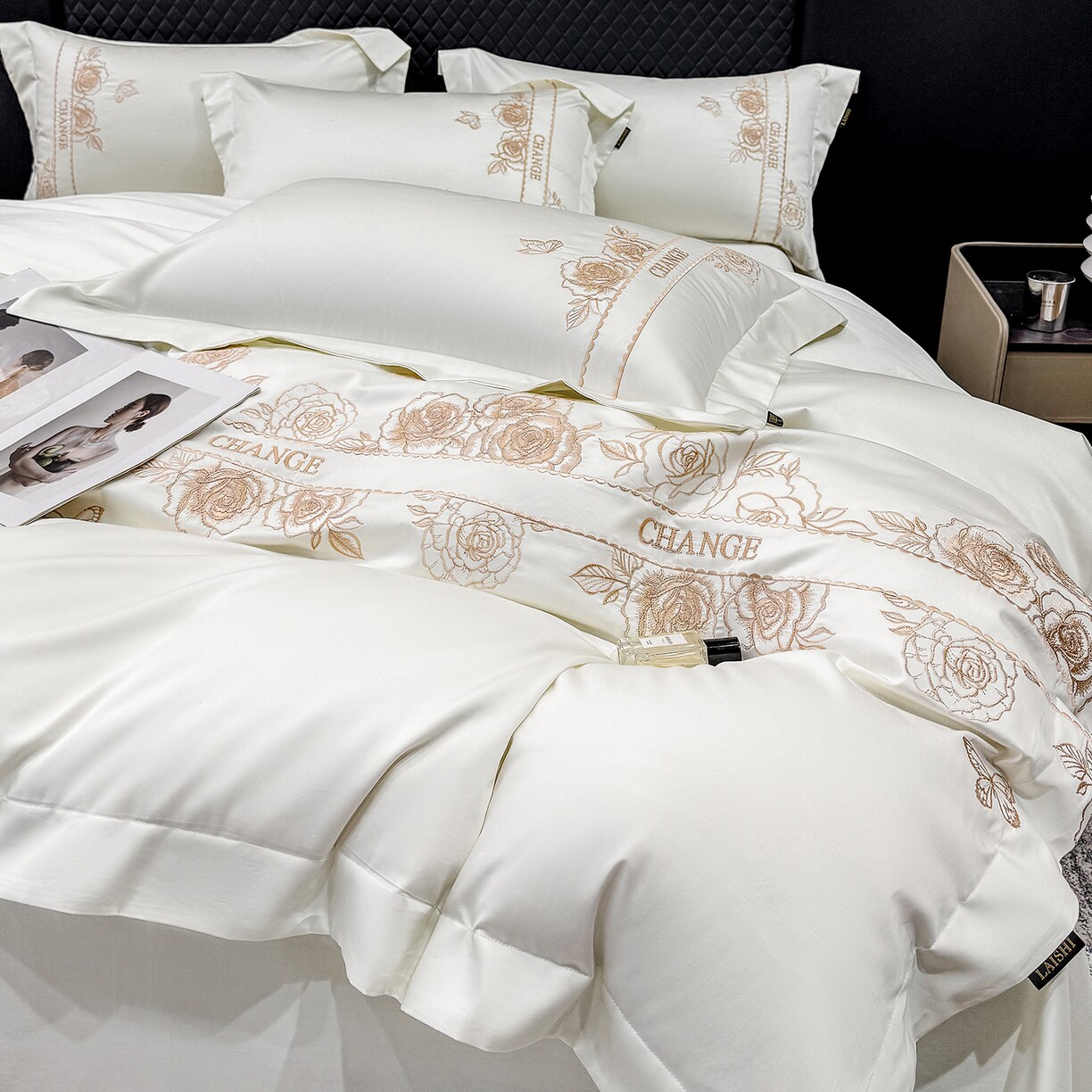 100支纯棉全棉贡缎长绒棉刺绣绣花四件套玫瑰花奢华床品套件浪漫