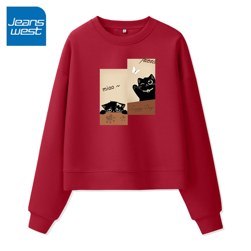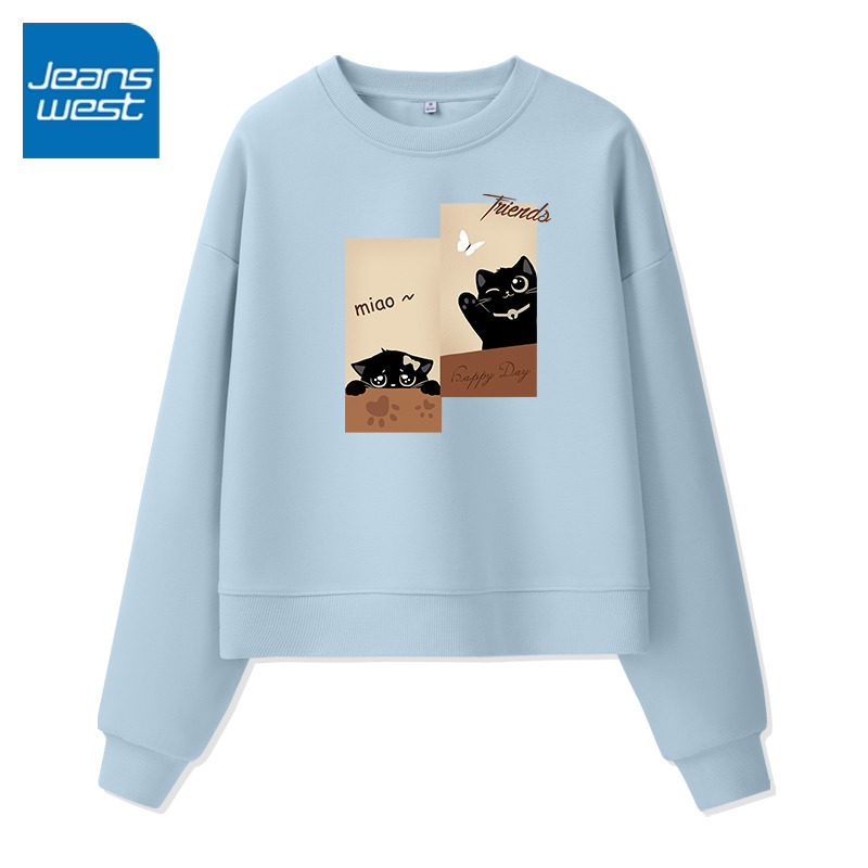 JR真维斯洋气长袖卫衣女秋季2025新款小个子短款圆领加绒上衣女士