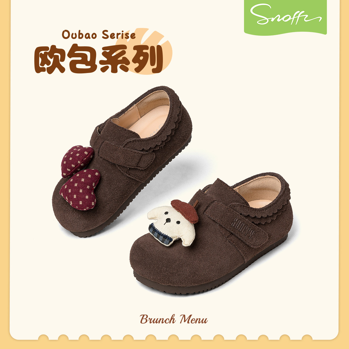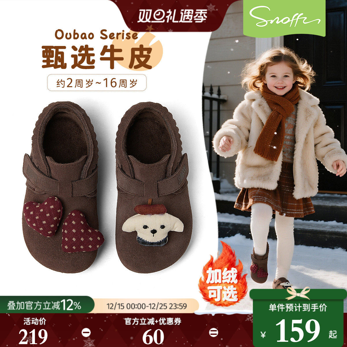 斯纳菲女童皮鞋儿童勃肯鞋2025秋冬新款加绒小公主牛皮新年红棉鞋
