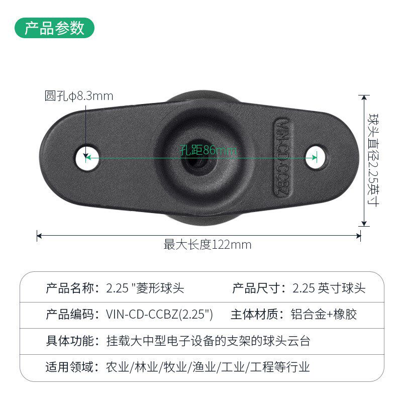 智能农机叉车塔吊工业电脑固定支架2.25英寸球头86孔距椭圆形底座