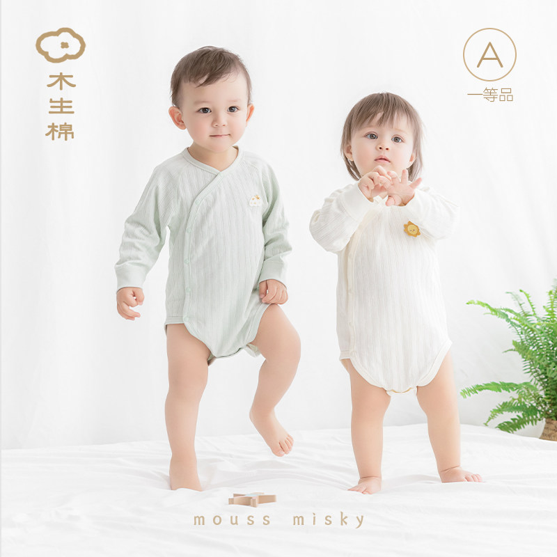 木生棉男女宝宝长袖连体衣春秋季婴儿纯棉a类三角哈衣爬服包屁衣