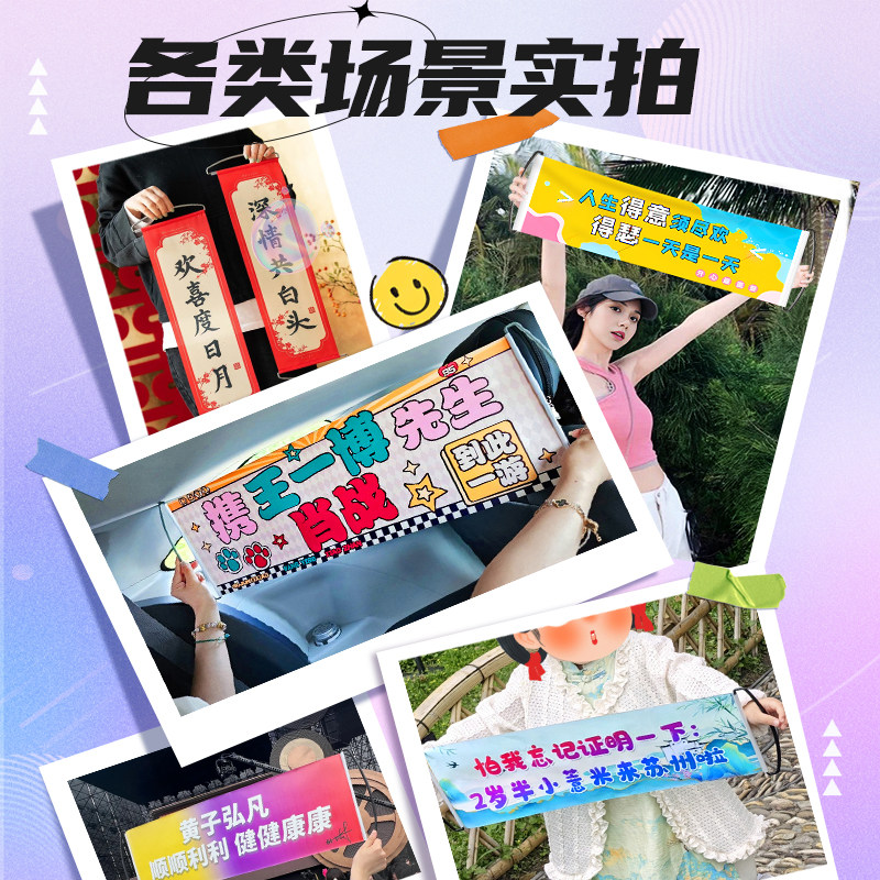 手拉旗定制应援国庆手幅定制接机结婚订婚手拉旗道具手拿旗拍照旅游手持拉条幅团建手举彩色小横幅定做演唱会