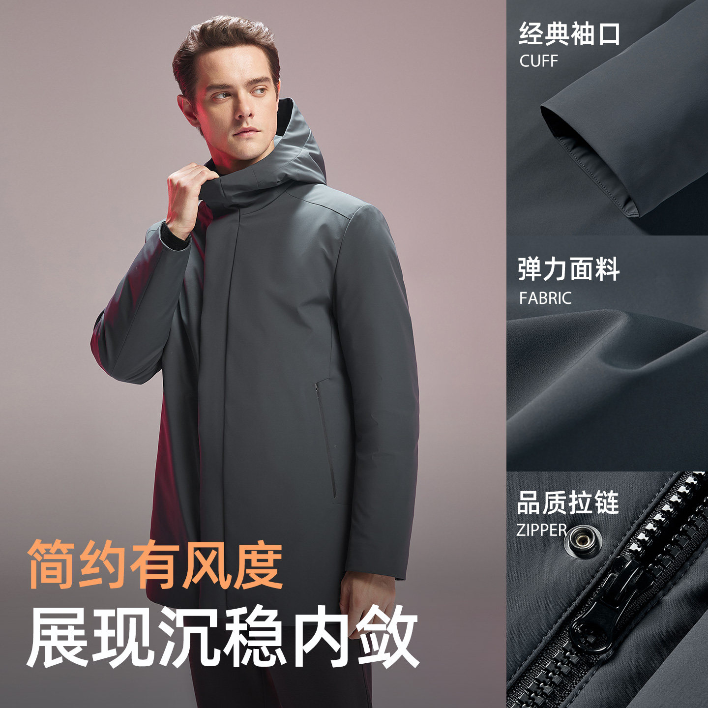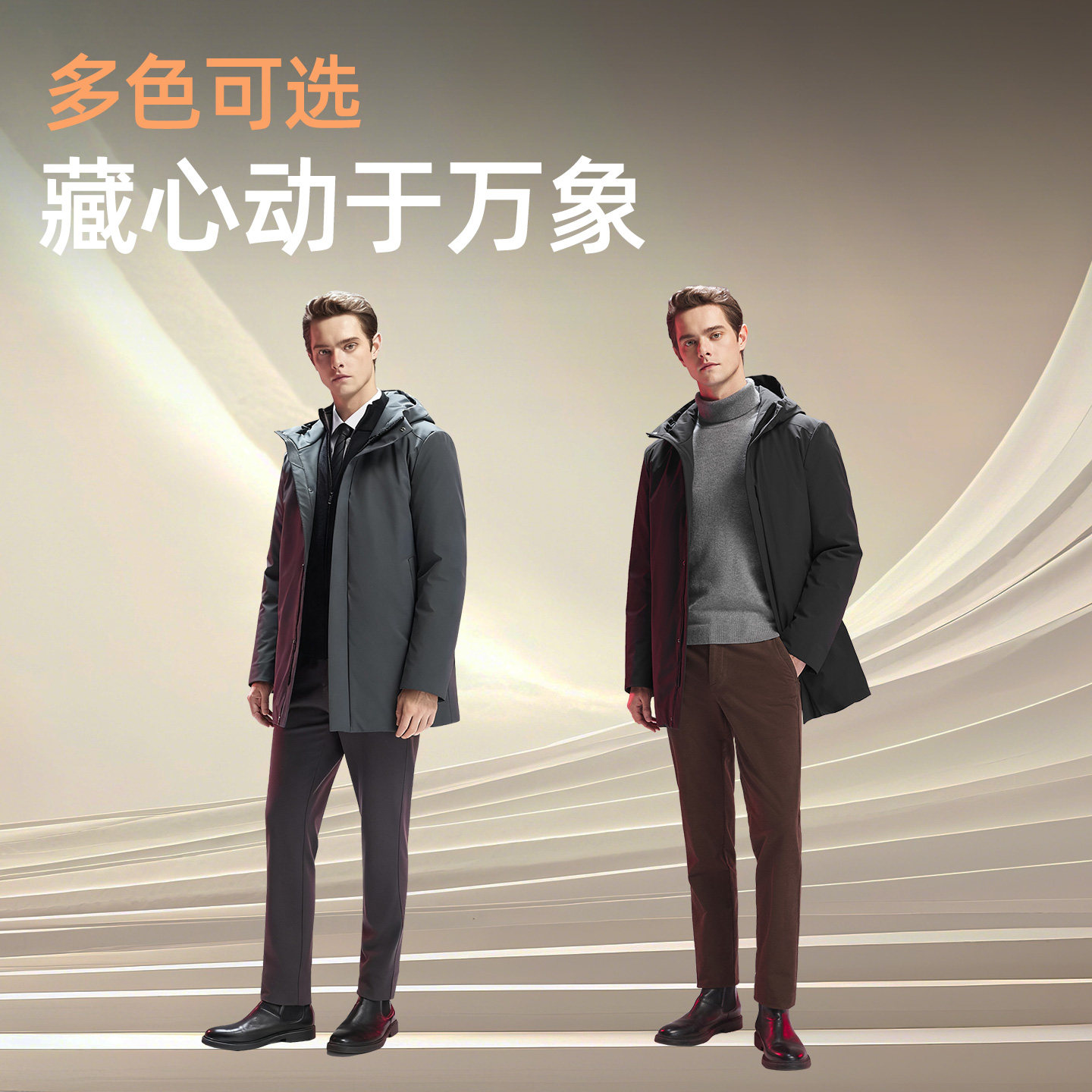 【内胆可脱】雅戈尔官方鹅绒服25秋冬新款男商务休闲连帽长款外套