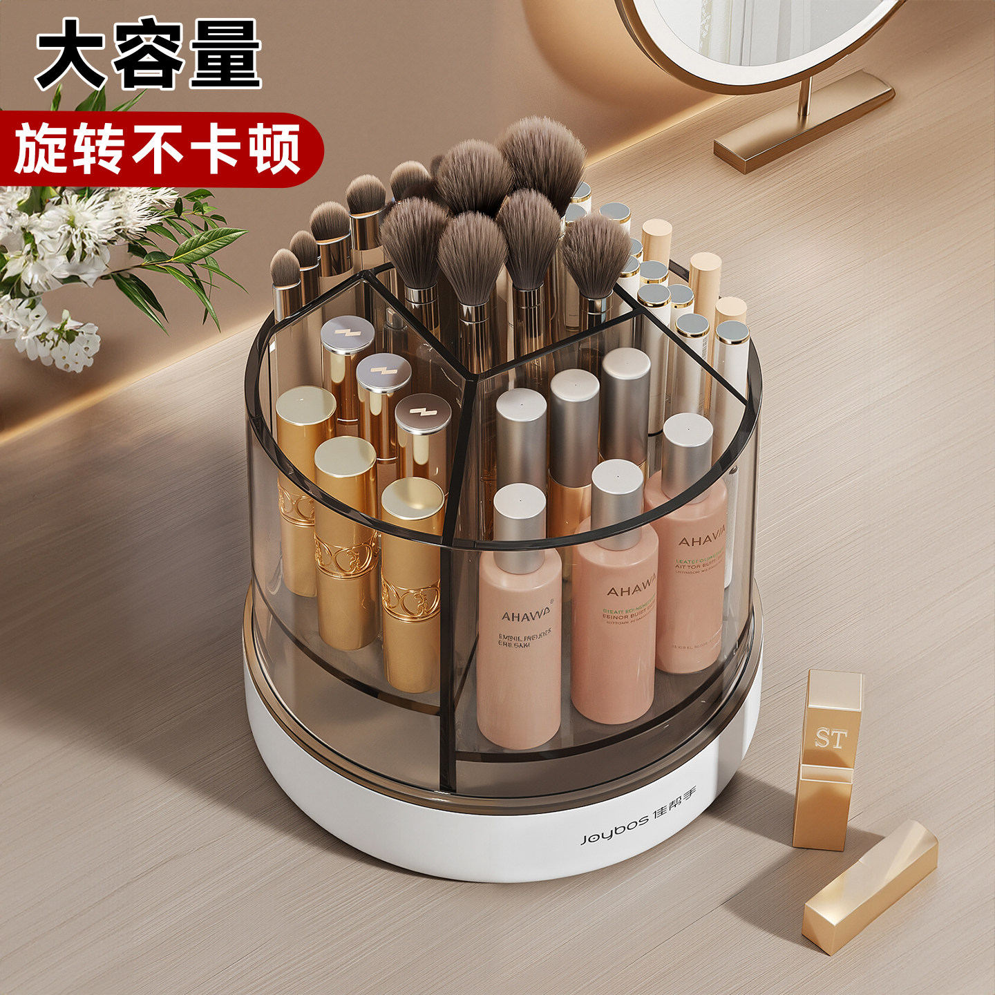 佳帮手大容量可旋转化妆刷收纳筒透明带盖防尘桌面口红高级整理盒