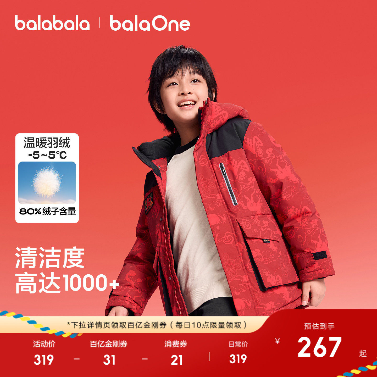 巴拉巴拉童装儿童羽绒服男女童2026新冬装保暖外套防护红色拜年服