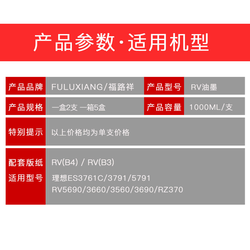 FULUXIANG适用理想RV油墨RZ370 RV3660c 3690 5690 3790 RV2590 RV2450 RZ230N RV2460 RV2490 S-4252V油墨
