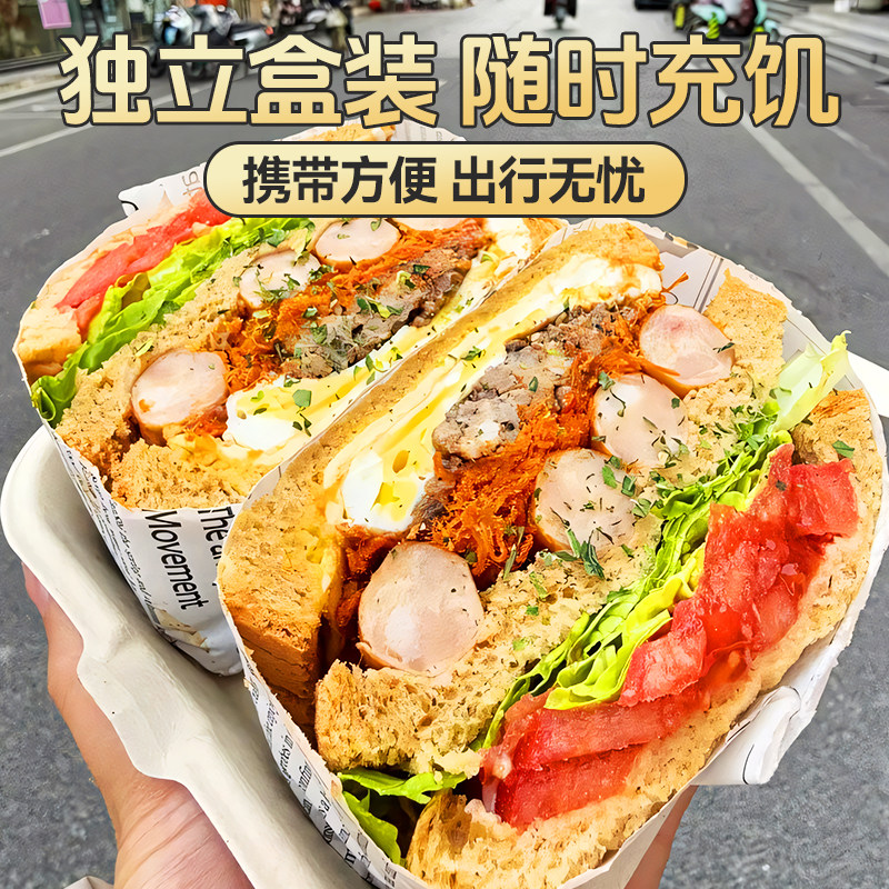 三明治早餐面包火腿片代餐鸡肉芝士夹心吐司零食肉松懒人紫米烘焙