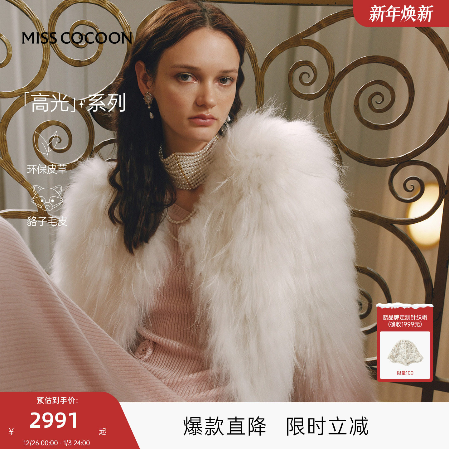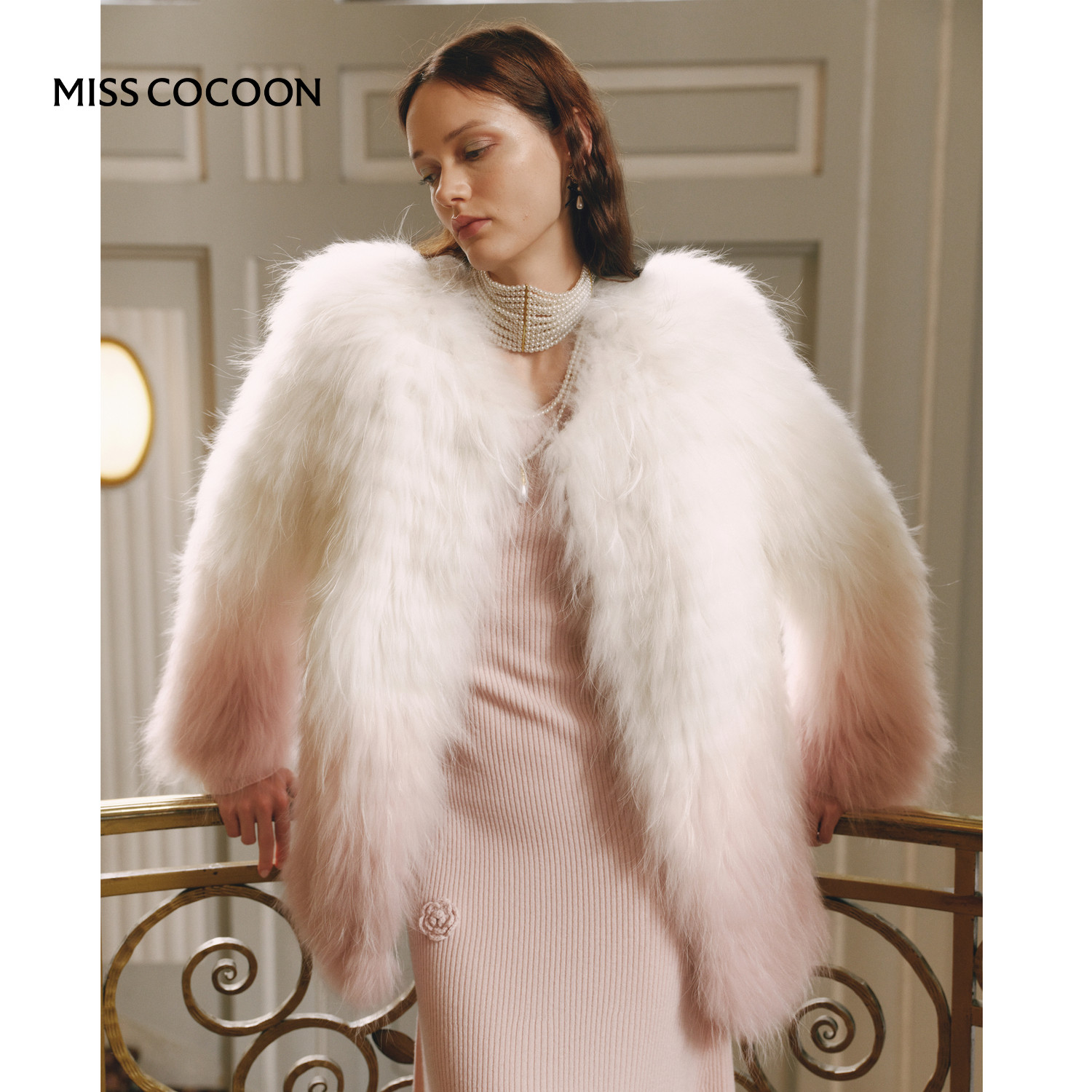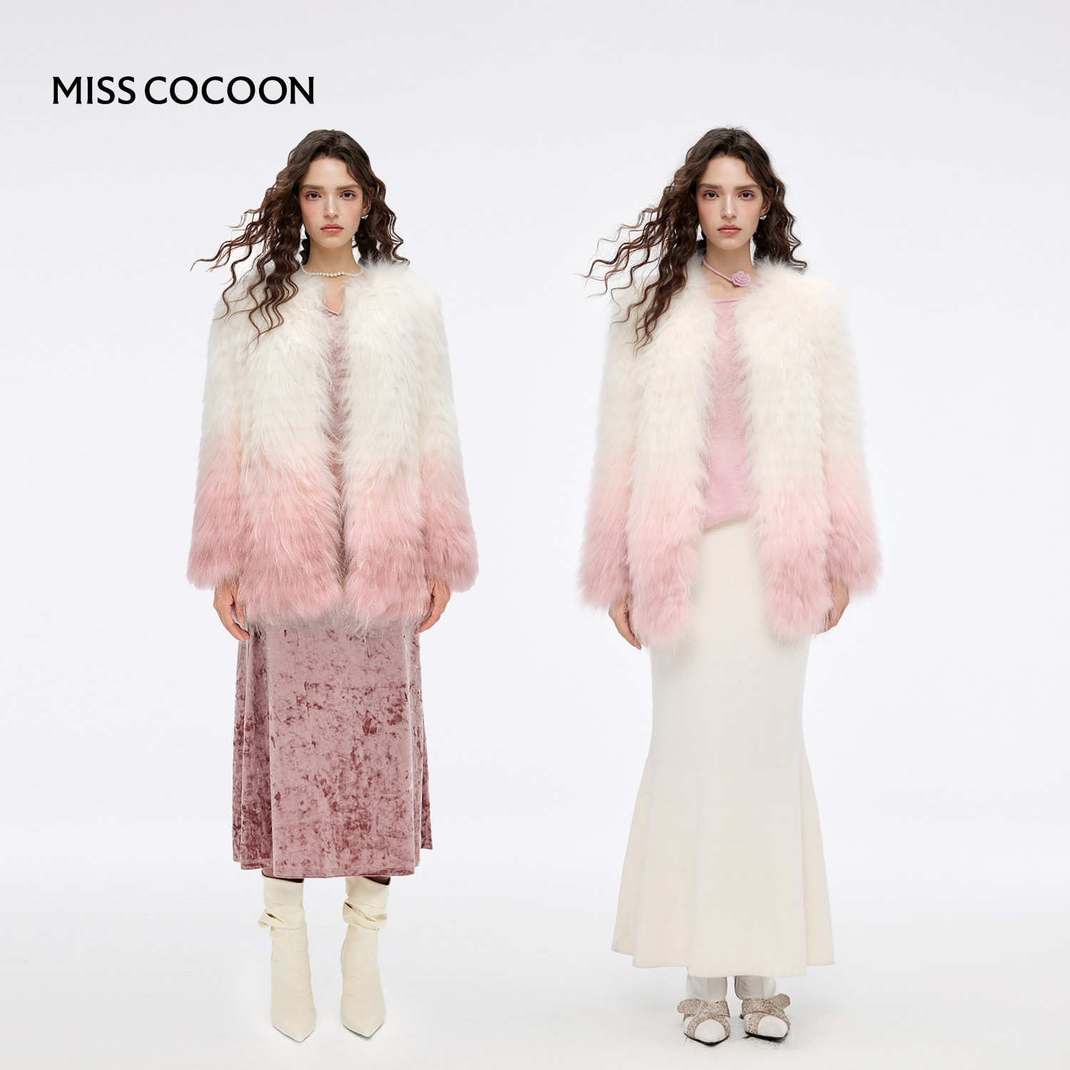 MISSCOCOON可可尼貉子毛皮草女2025冬季新款千金感渐变色毛毛外套