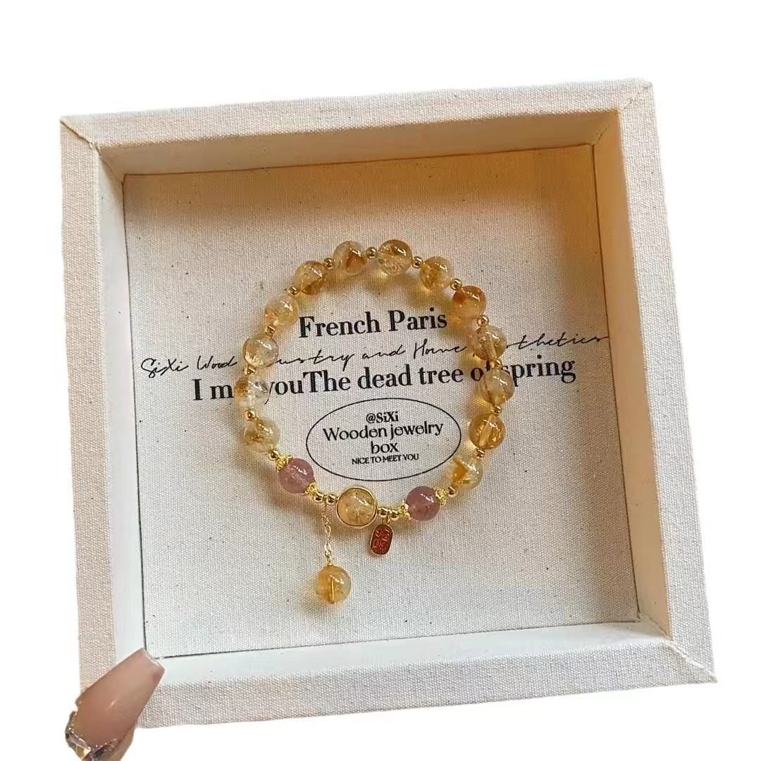 oein天然女款晶黄水晶手串小众设计款滴溜黄塔清新甜美手链闺蜜