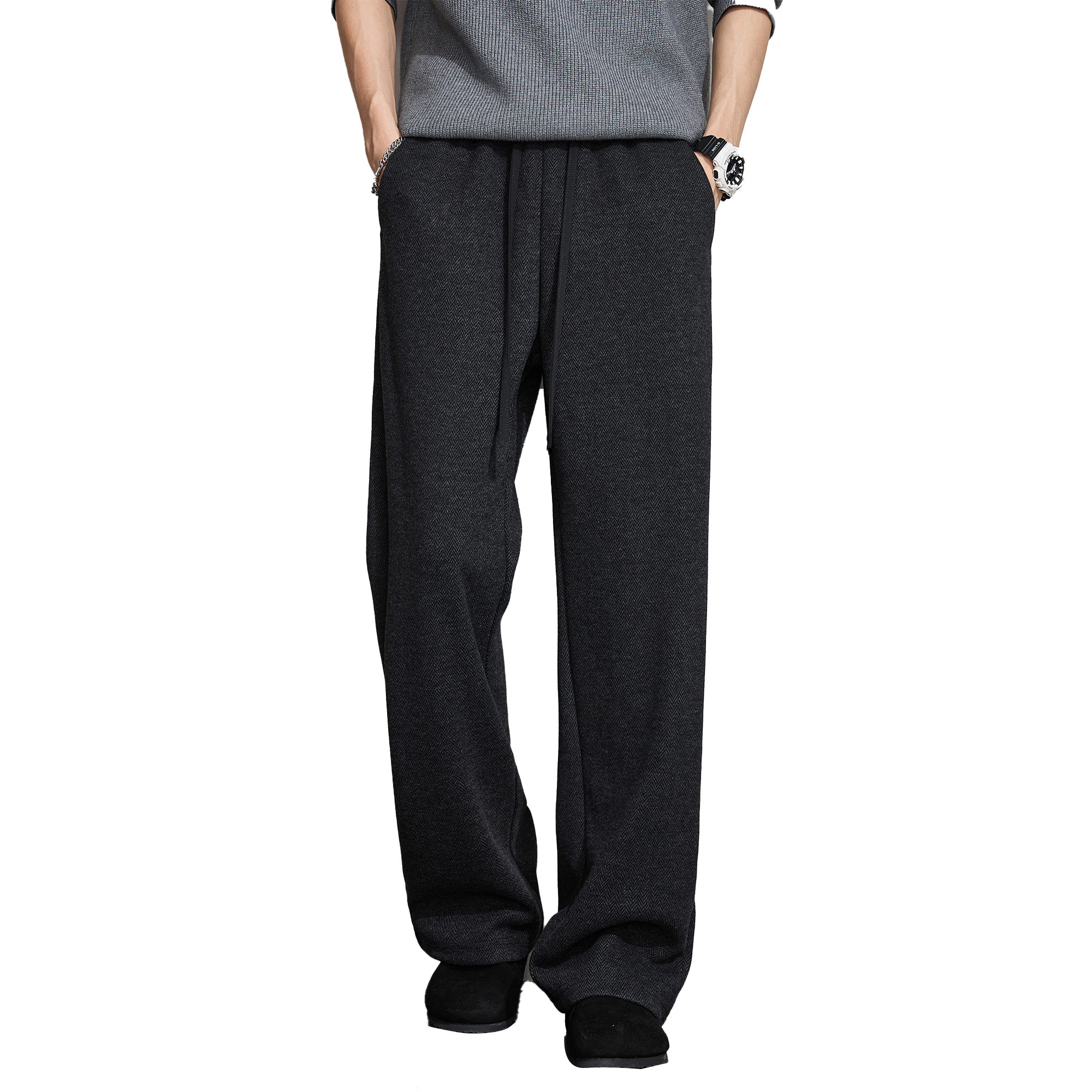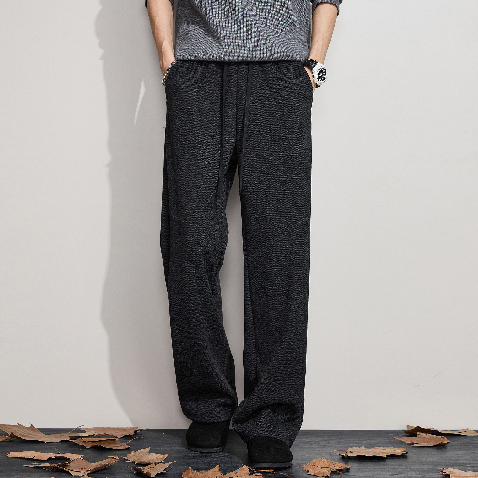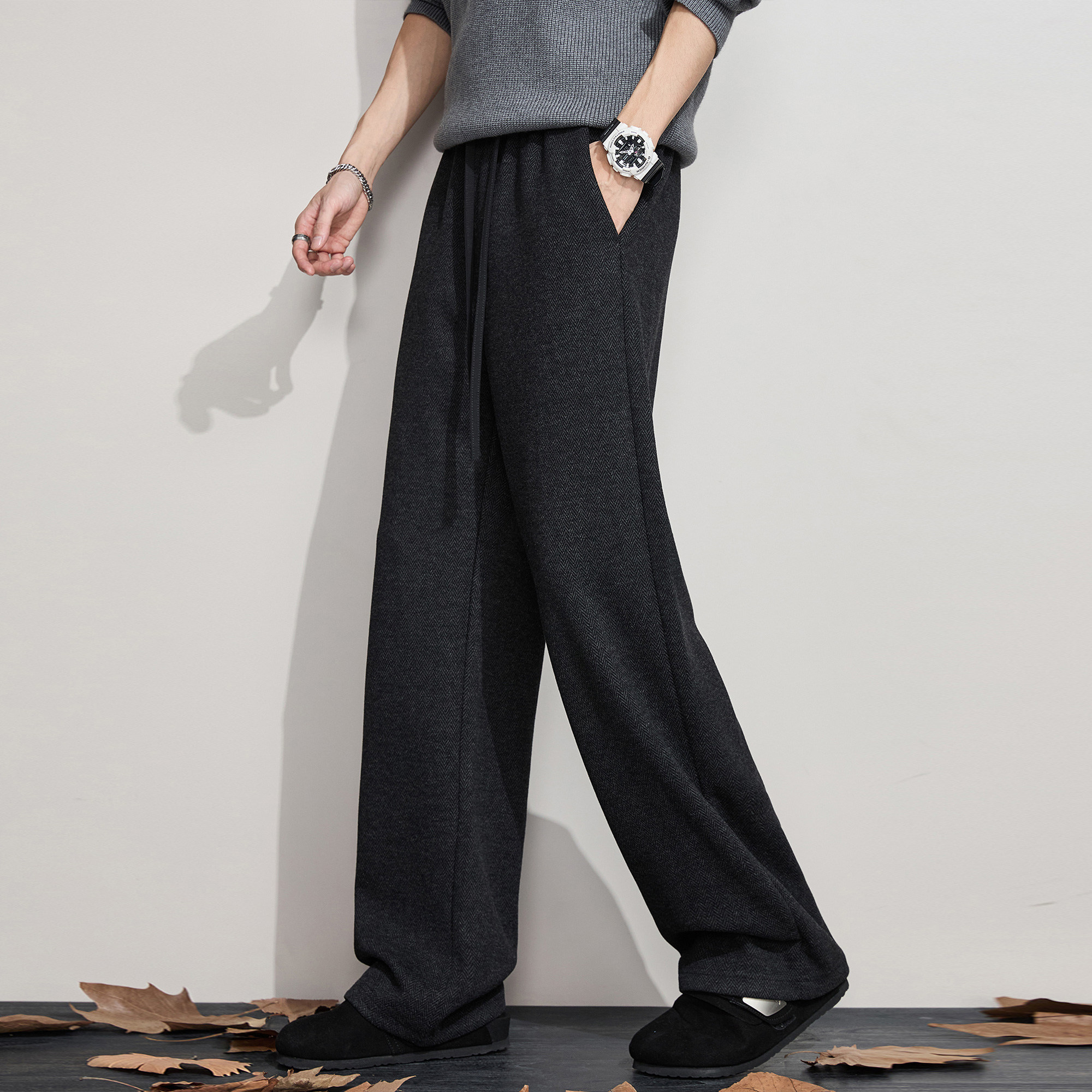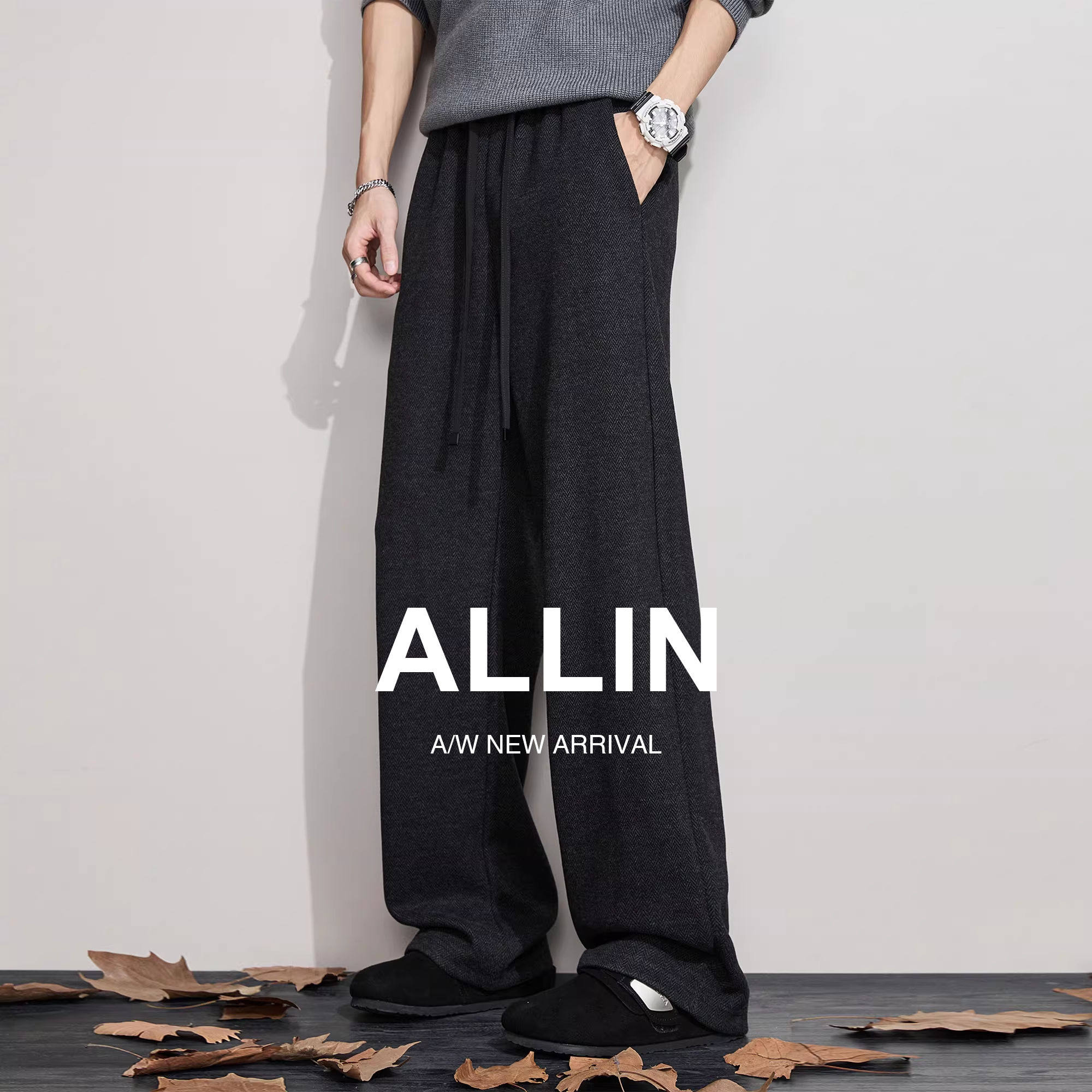 ALLIN 黑色含羊毛休闲卫裤男秋冬宽松直筒阔腿弯刀裤运动抽绳裤子