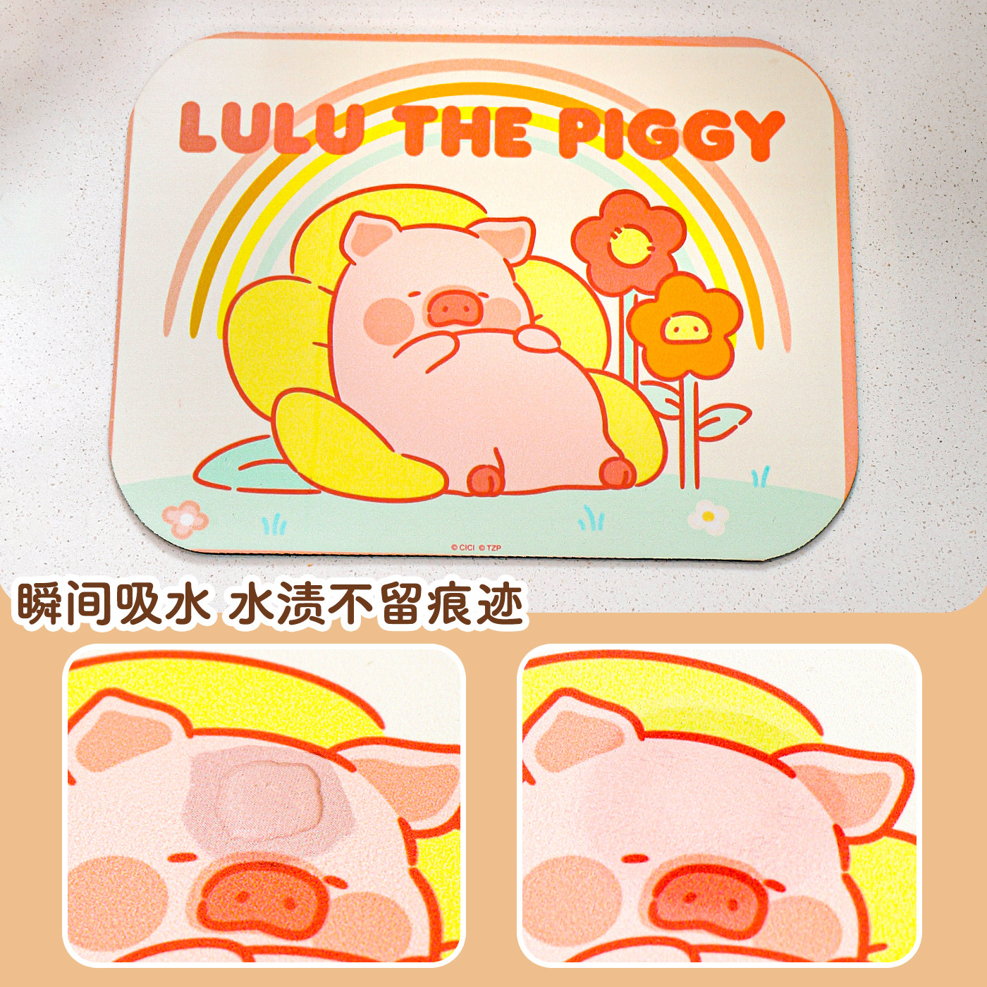 川岛屋&lulu猪联名 厨房台面沥水垫硅藻泥吸水高颜值咖啡机桌垫子