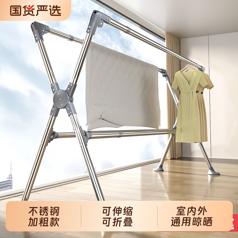 不锈钢折叠晾衣架落地晒衣架伸缩晾衣杆阳台晒被子室内外挂衣架子