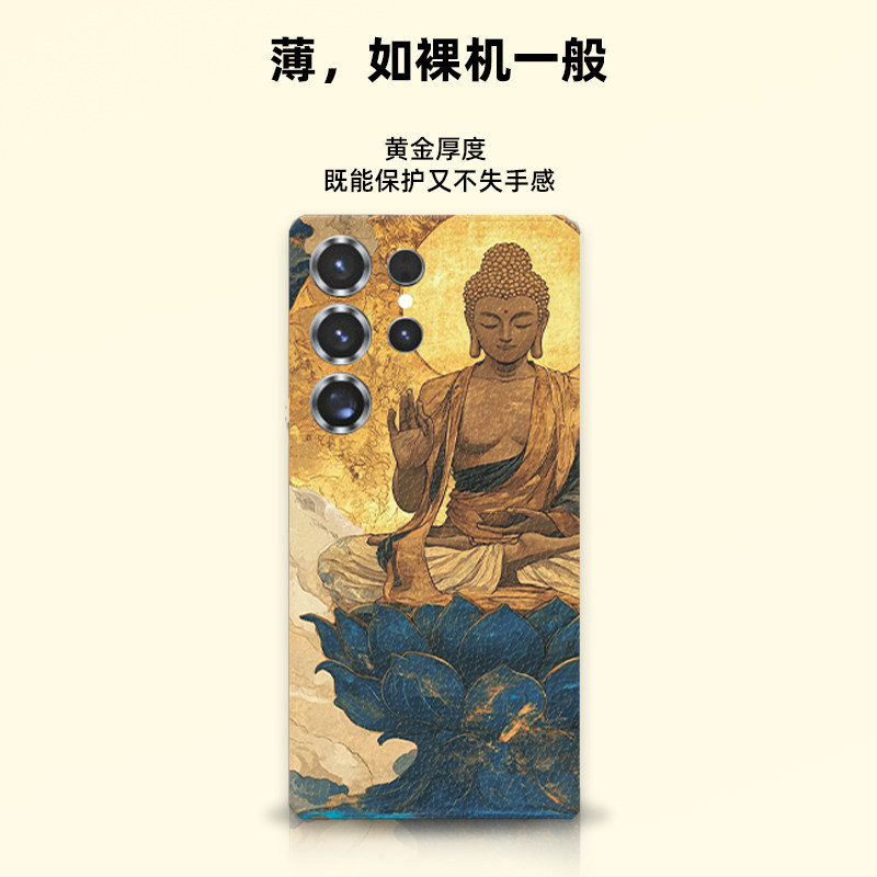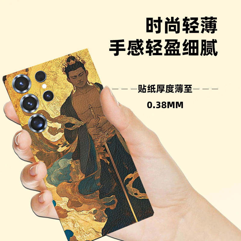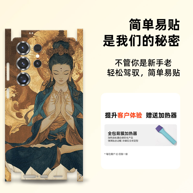 三星S25Ultra素皮背膜S24U全包保护膜防摔个性后膜S25边框膜皮纹高级感佛像S24+镜头膜3m磨砂贴纸S23改色膜