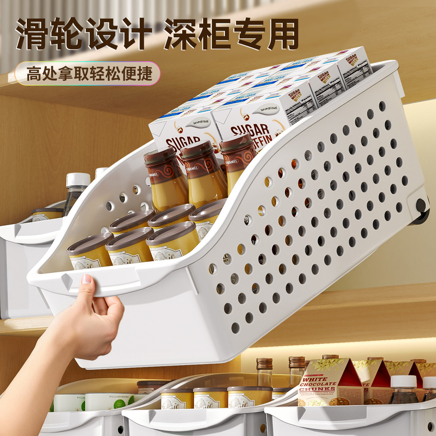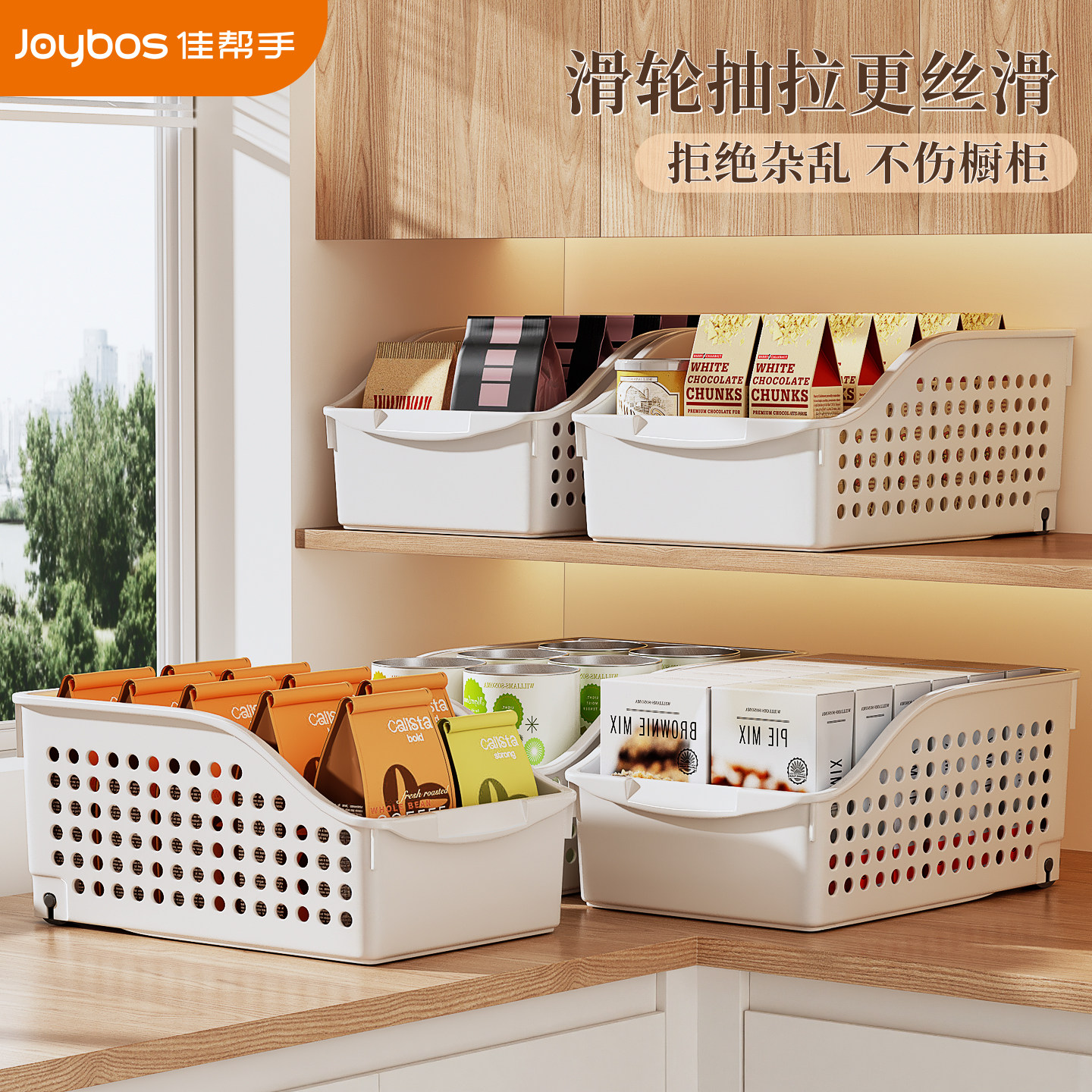 佳帮手带轮收纳筐厨房杂物零食整理筐家用橱柜置物篮子储物整理盒