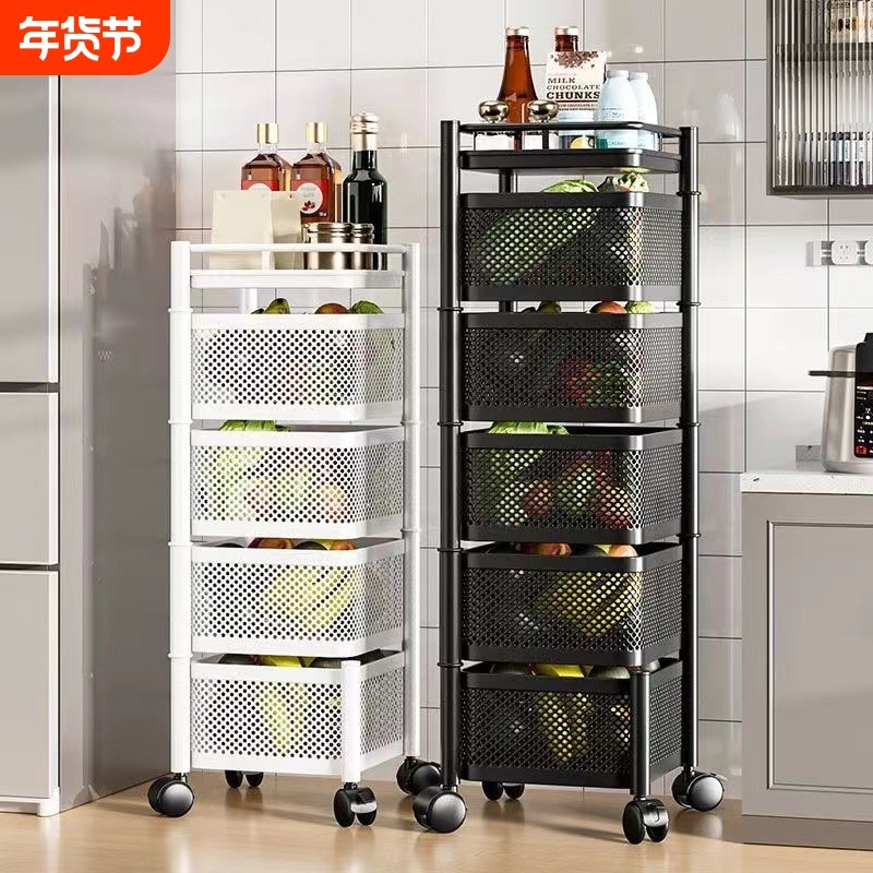 厨房旋转置物架家用落地客厅零食箱玩具果蔬菜篮多层小推车收