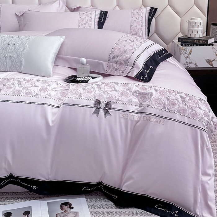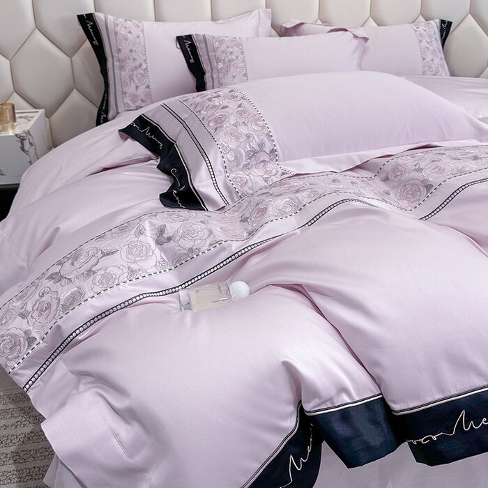 A类新疆长绒棉刺绣全棉四件套纯棉床品套件感床上用品床单被套