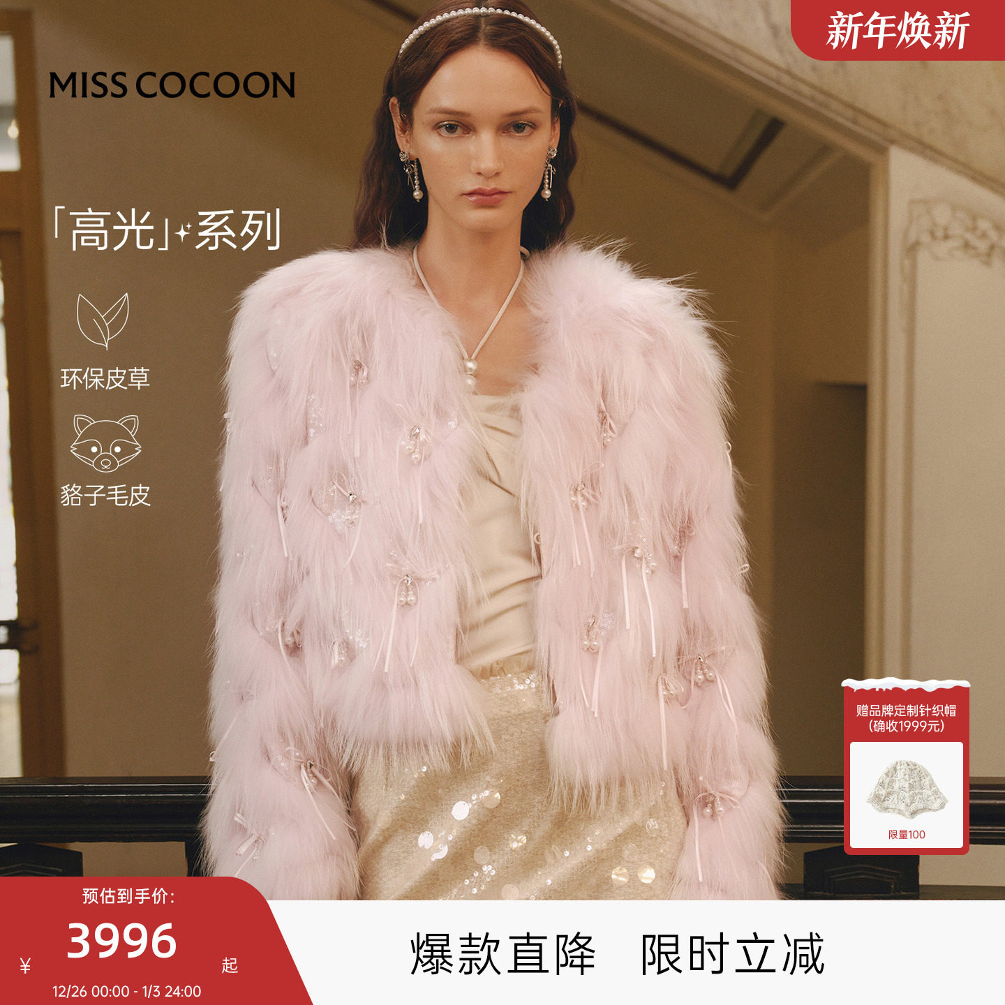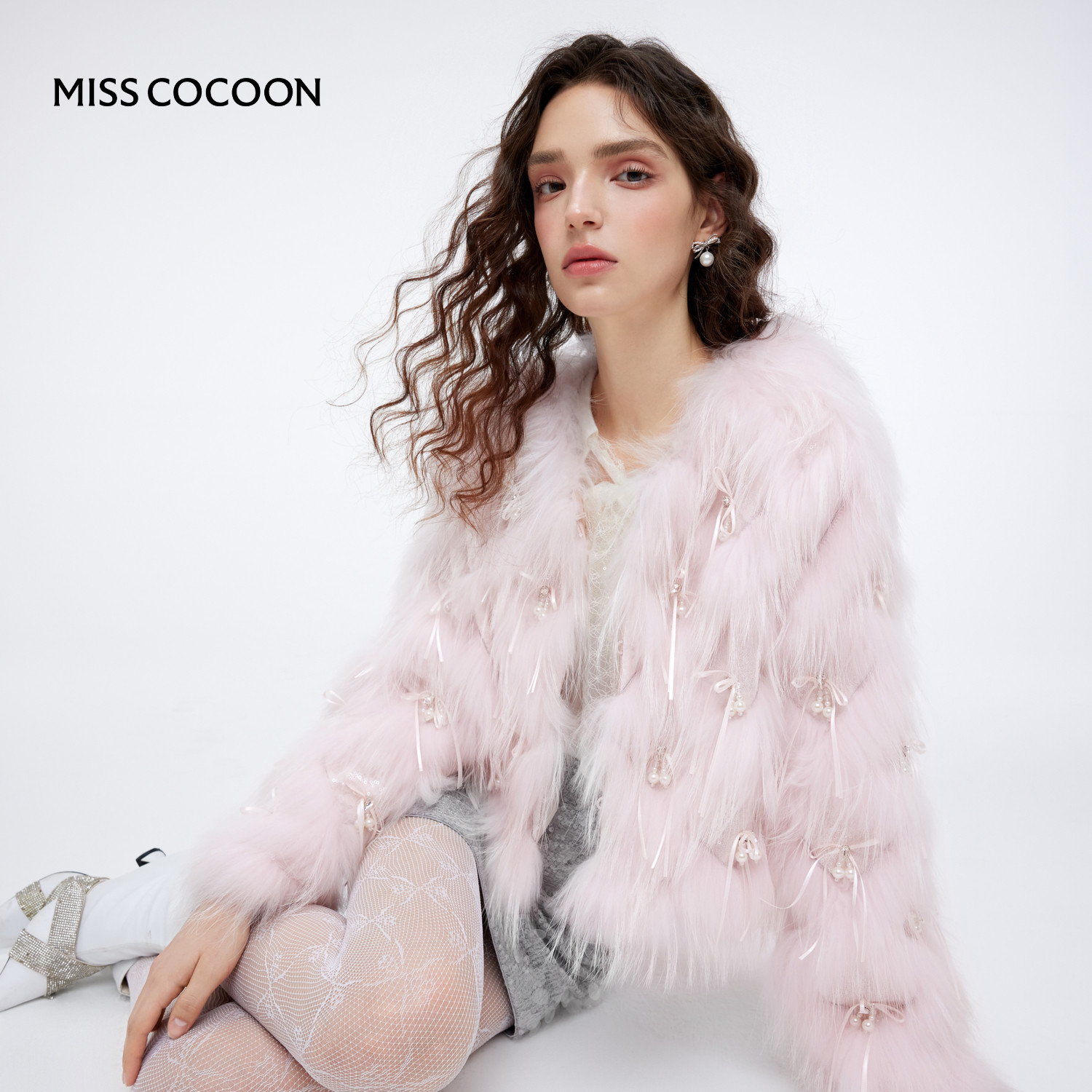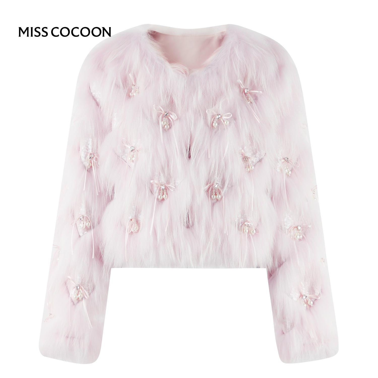 MISSCOCOON可可尼毛毛外套女2025冬新款小香风白色短款貉子毛皮草