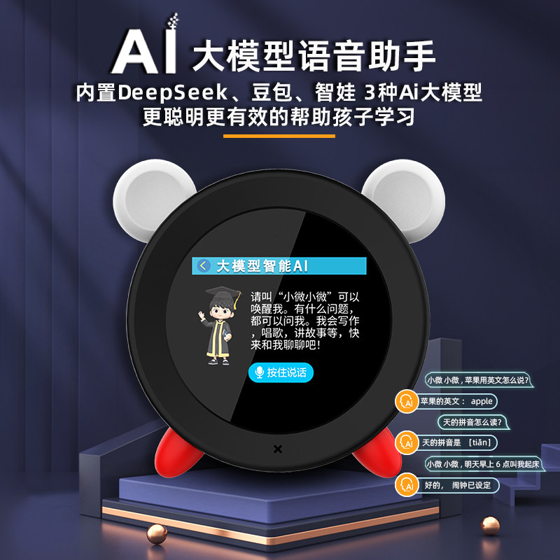 快易典AI智能语音闹钟中小学生专用2025新款女孩故事机早教启蒙英语陪练语言控制对话起床神器儿童计时器闹铃
