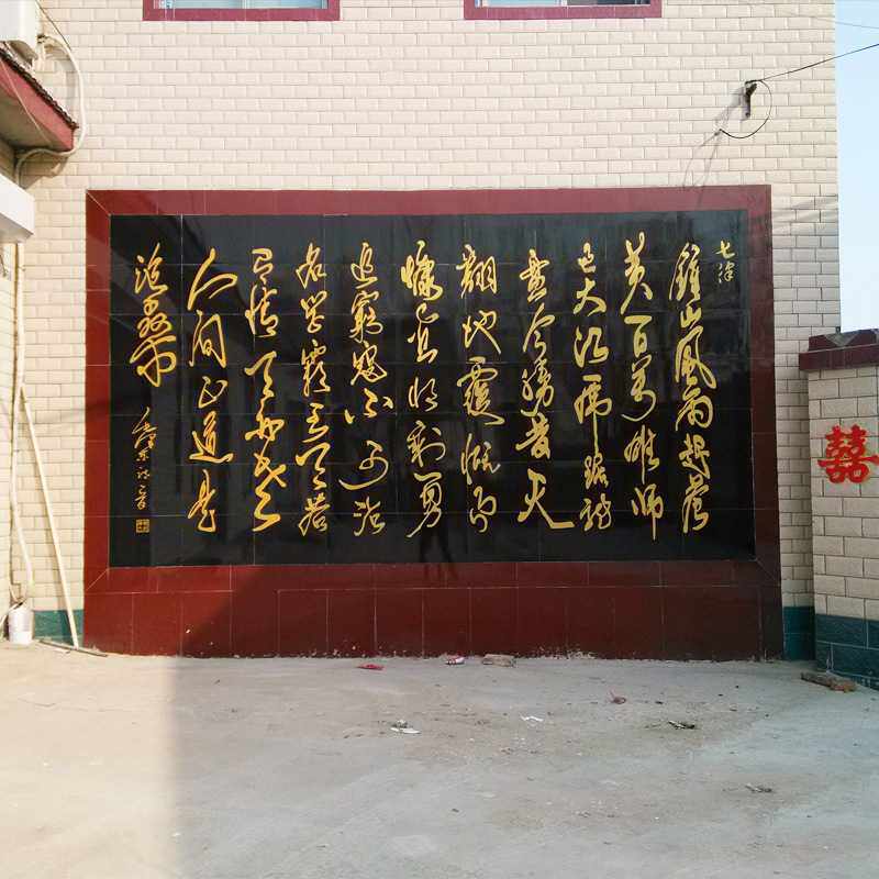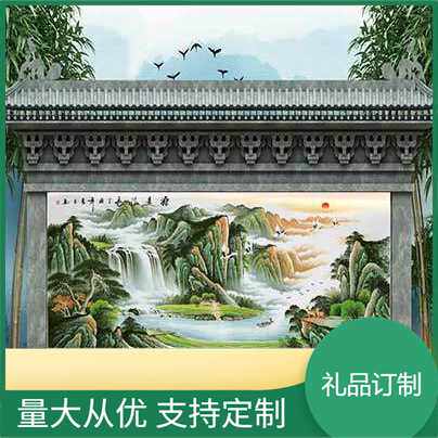 迎客松瓷画 瓷砖背景墙 室外背景墙 仿古瓷砖壁画雕刻拼图画