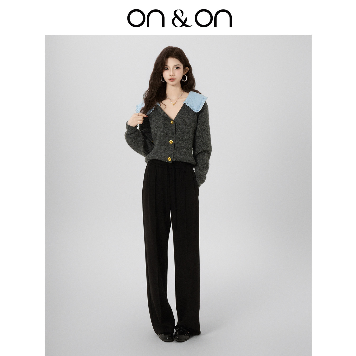 ON&ON/安乃安2025冬季新款韩系甜美减龄撞色拼接单排扣针织外套