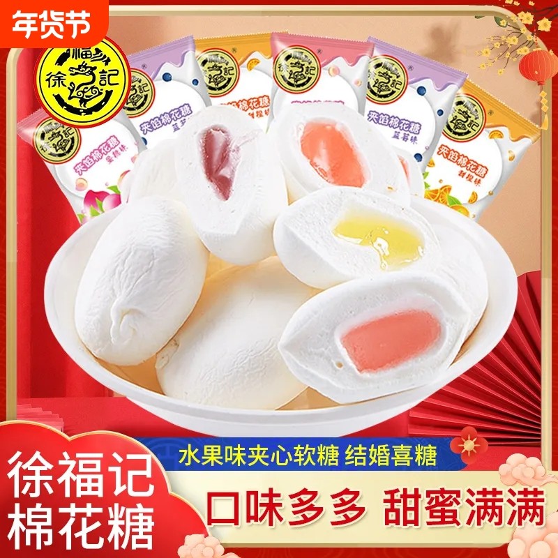 徐福记夹馅棉花糖混合水果味软糖果结婚喜糖婚庆喜宴年货批发夹心