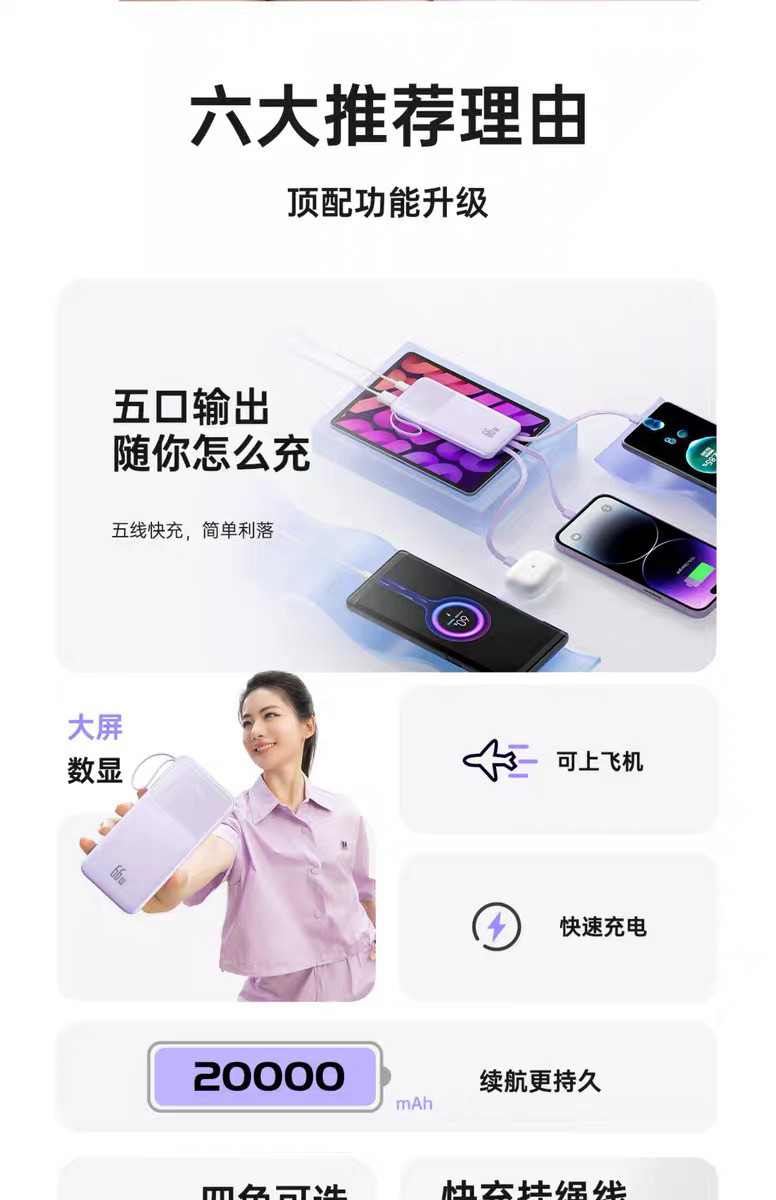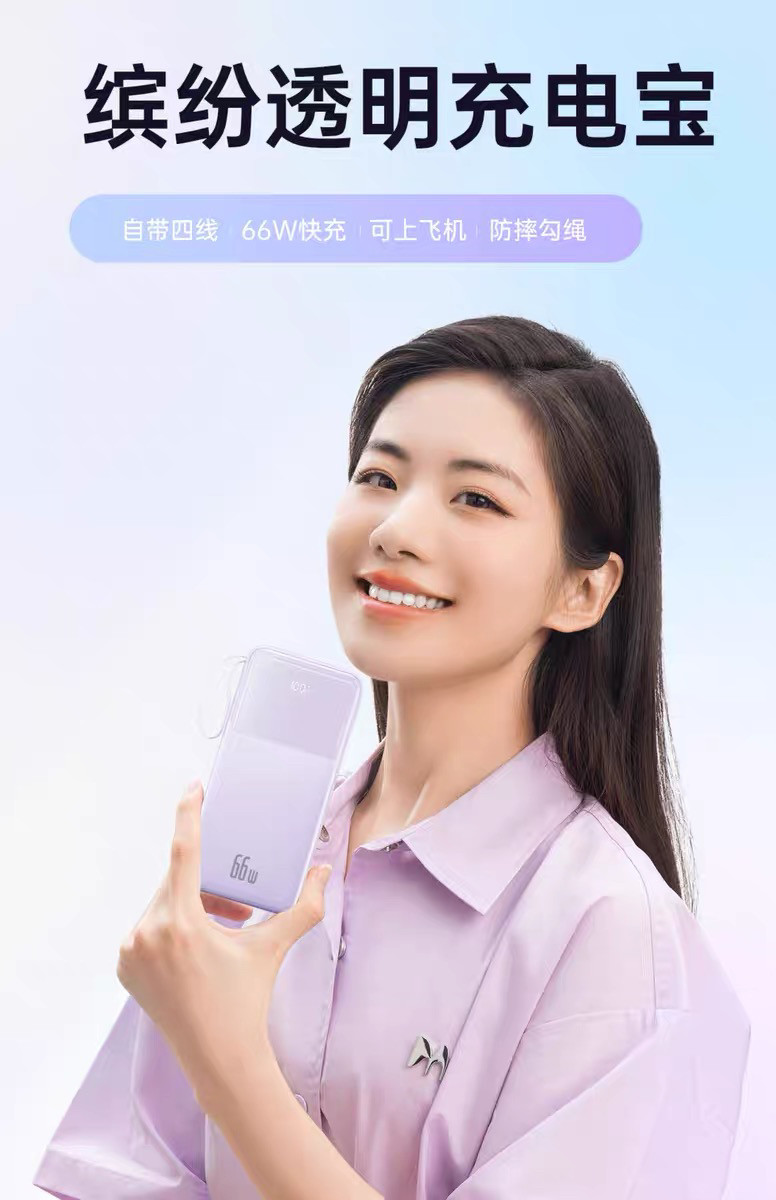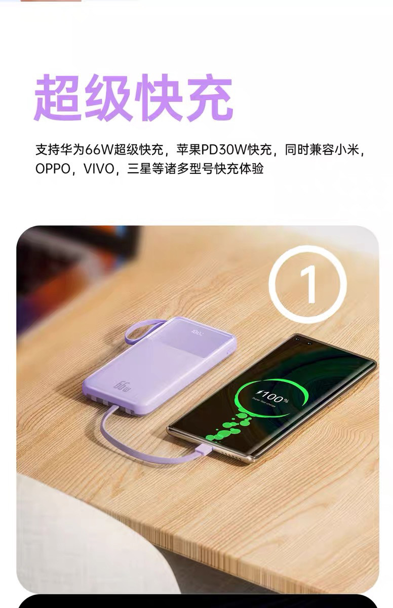 超级快充超大容量充电宝20000毫安自带线超薄小巧便携迷充电宝