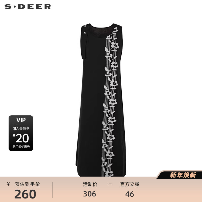 sdeer圣迪奥女装圆领撞色花卉背带针织连衣裙S241Z1213
