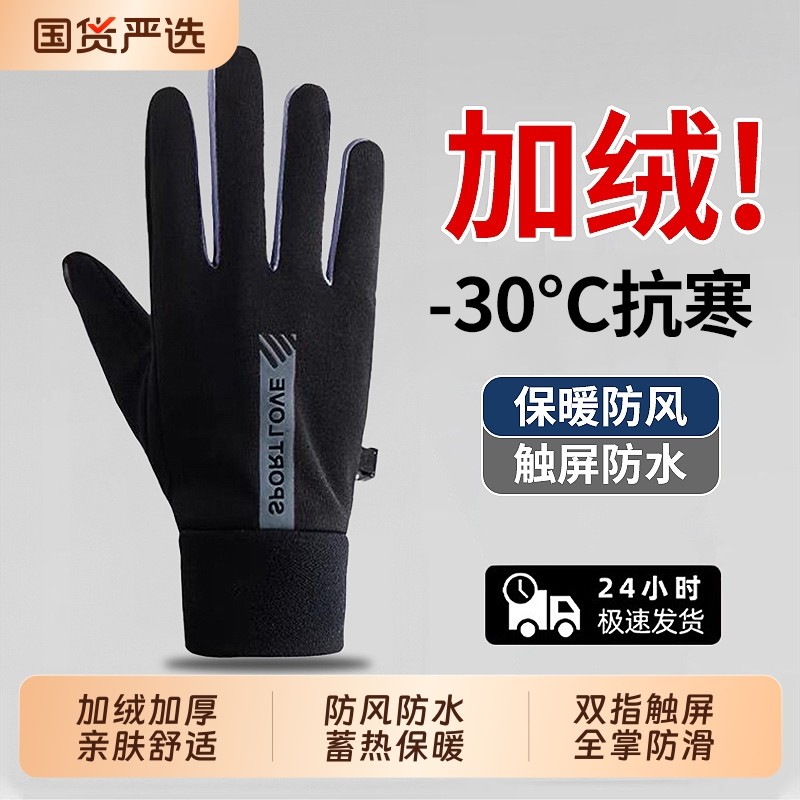 俞兆林加绒保暖骑行手套男女冬季防风防水触屏户外电动车防滑耐磨