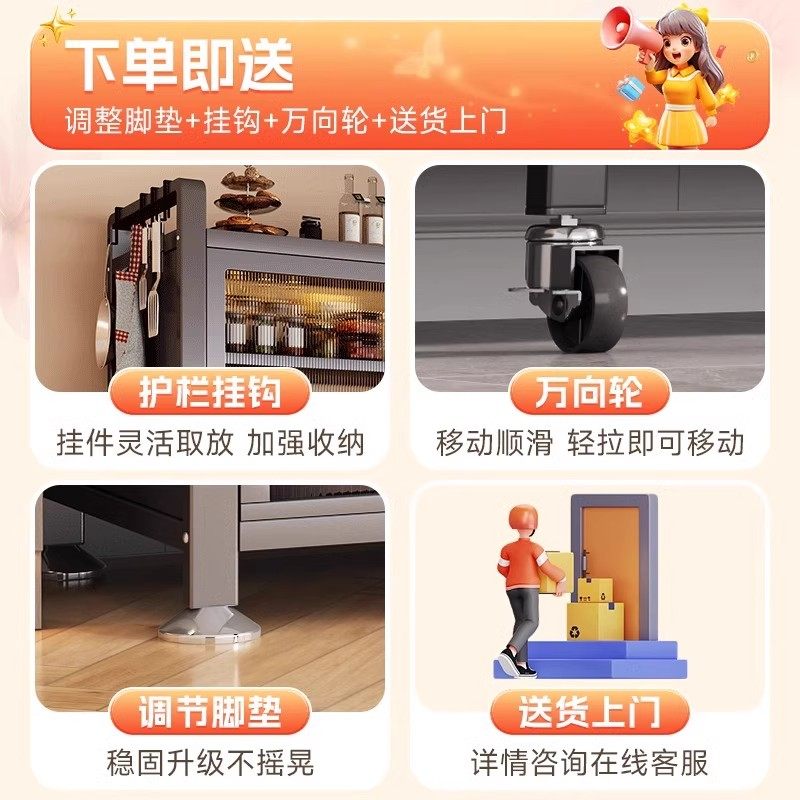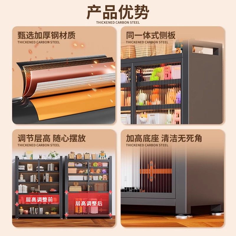 厨房置物架落地多层收纳柜子微波炉家用碗柜多功能橱柜阳台储物柜