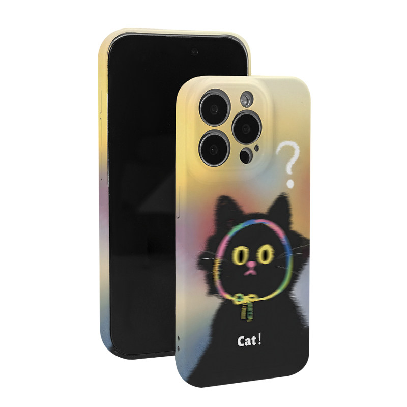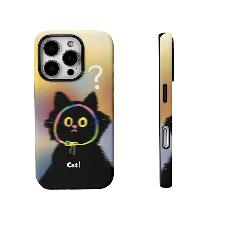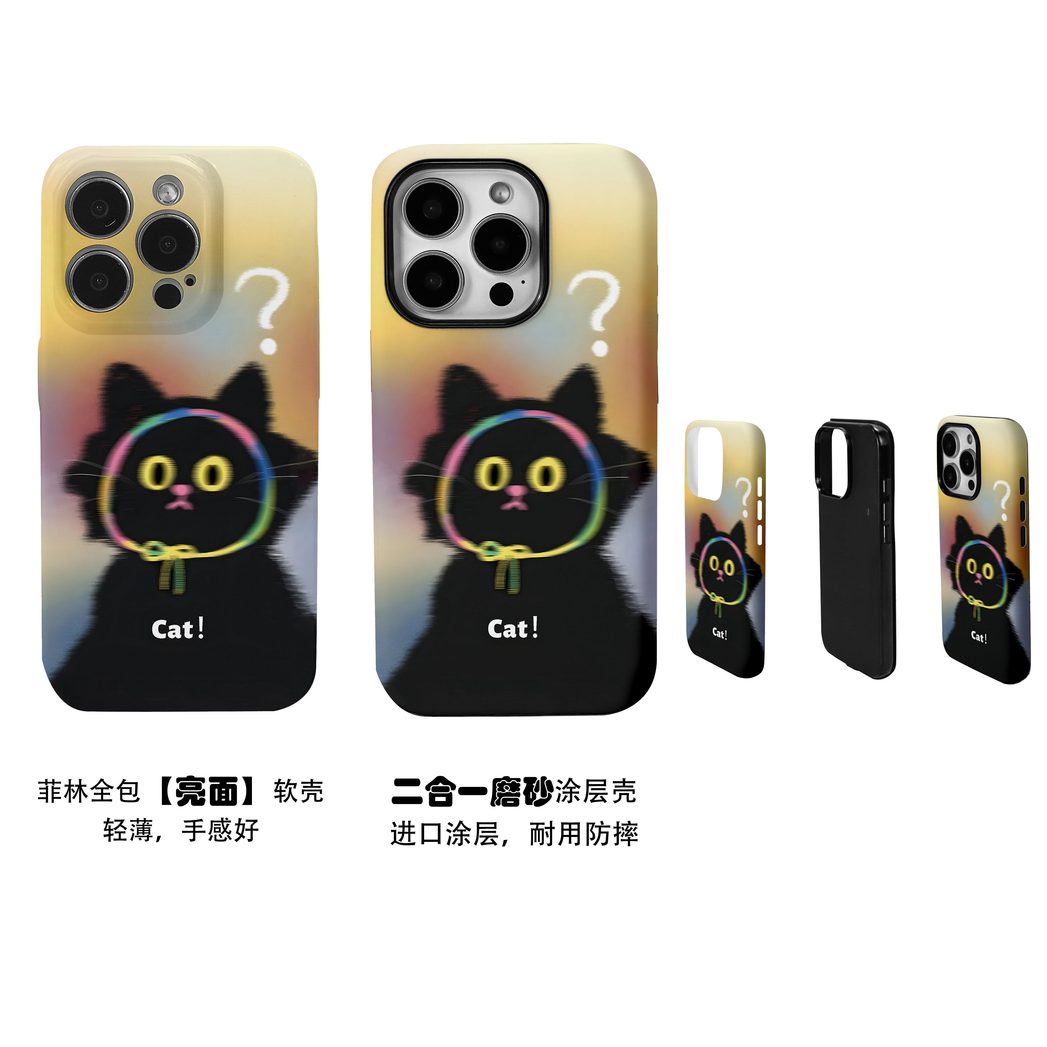 卡通可爱渐变黑猫炫酷菲林二合一手机壳适用苹果17nova14华为p70mate60小米15opporen14ovivo荣耀300iPhone16