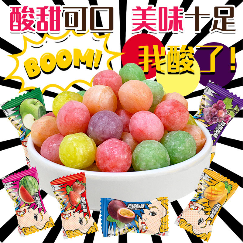 糖果网红爆酸糖巨酸提神小零食水果糖上课超大晕车柠檬多种爆浆