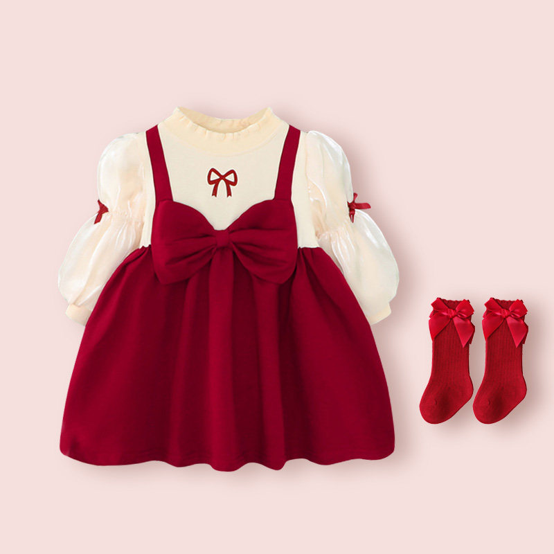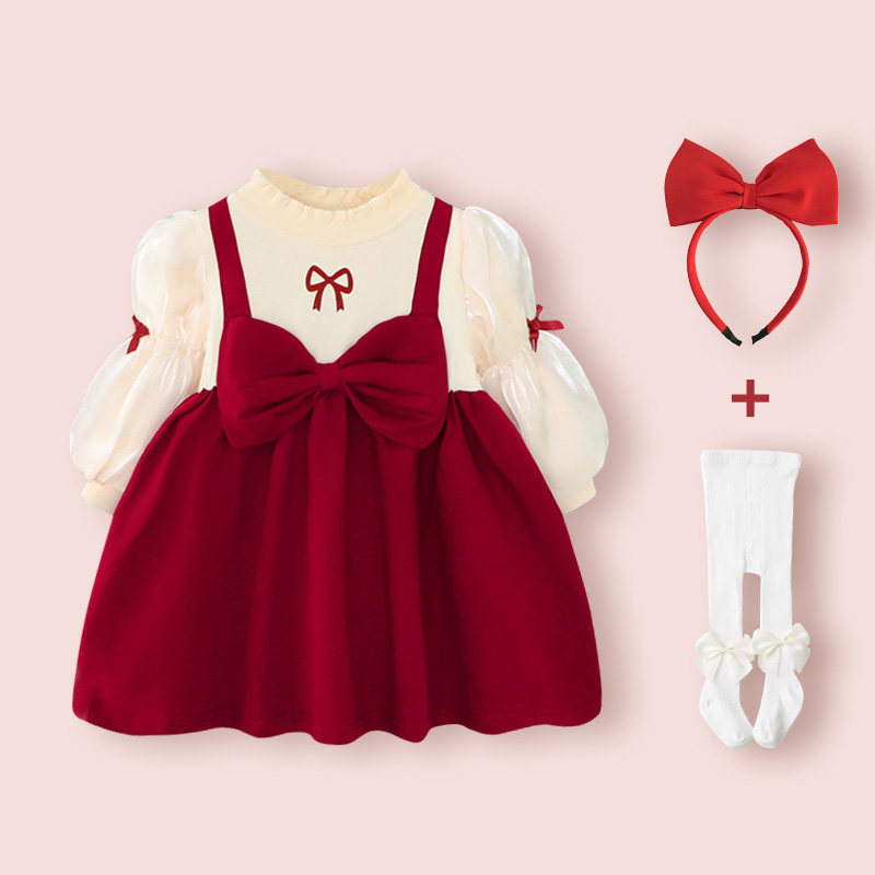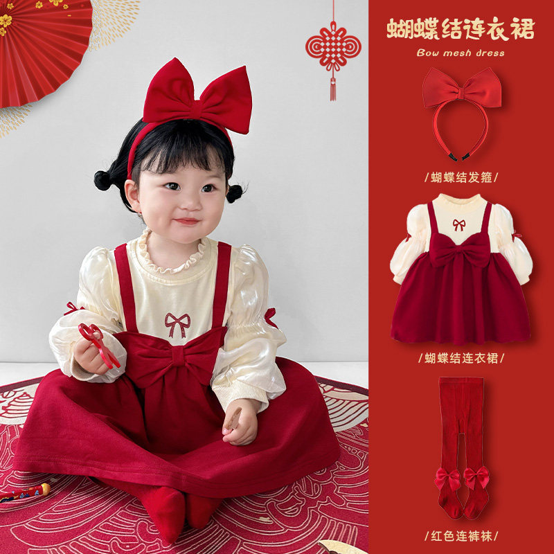 女童连衣裙冬季女宝宝周岁礼服婴儿公主裙一岁女孩新年拜年服裙子