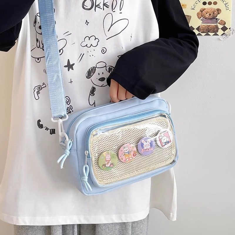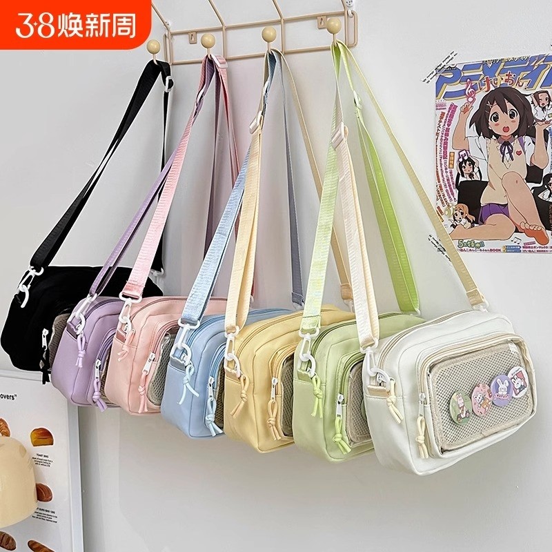 可爱马卡龙斜挎包二次元小食量透明小包包女吧唧扎板痛包娃包手提
