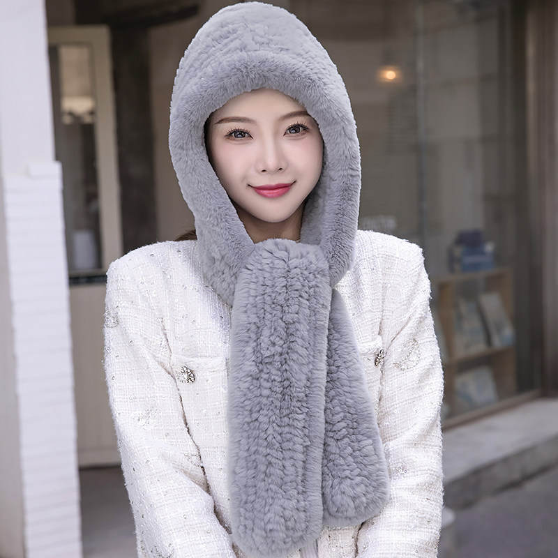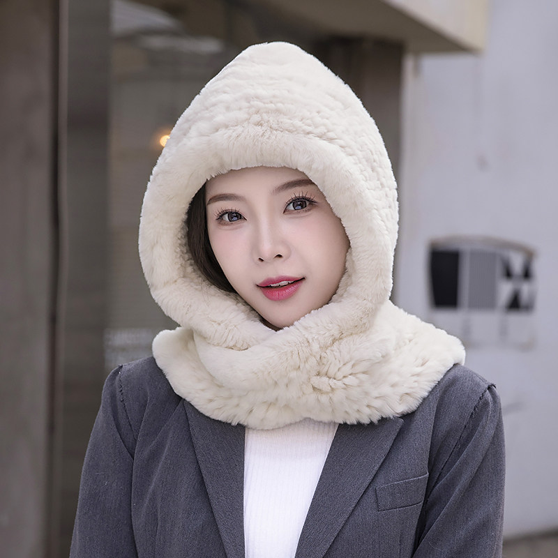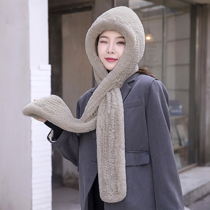 冬季獭兔毛皮草帽子围巾一体风雪帽披肩 保暖护耳防风室外男女款