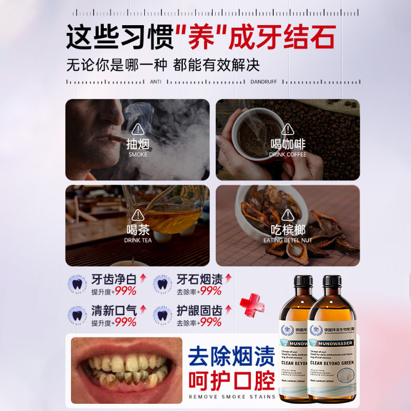 爆款牙石牙结石溶解漱口水洗牙齿污垢牙垢黄清理神器口腔清洁清除