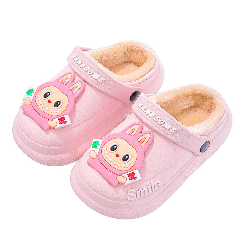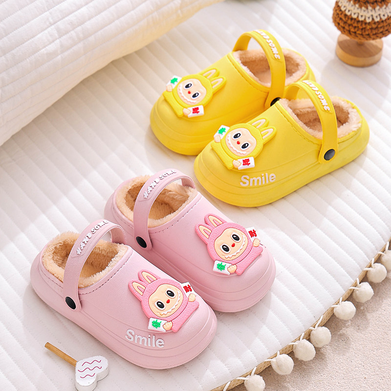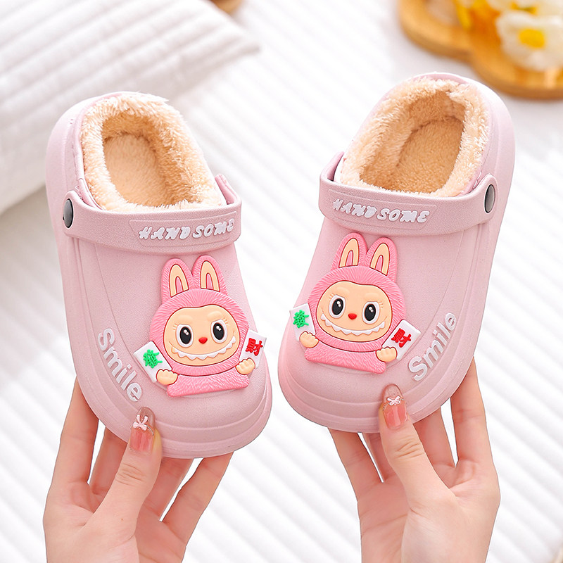秋冬季儿童棉拖鞋男童防水防滑亲子卡通毛毛鞋室内外女童保暖棉鞋