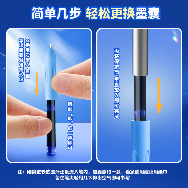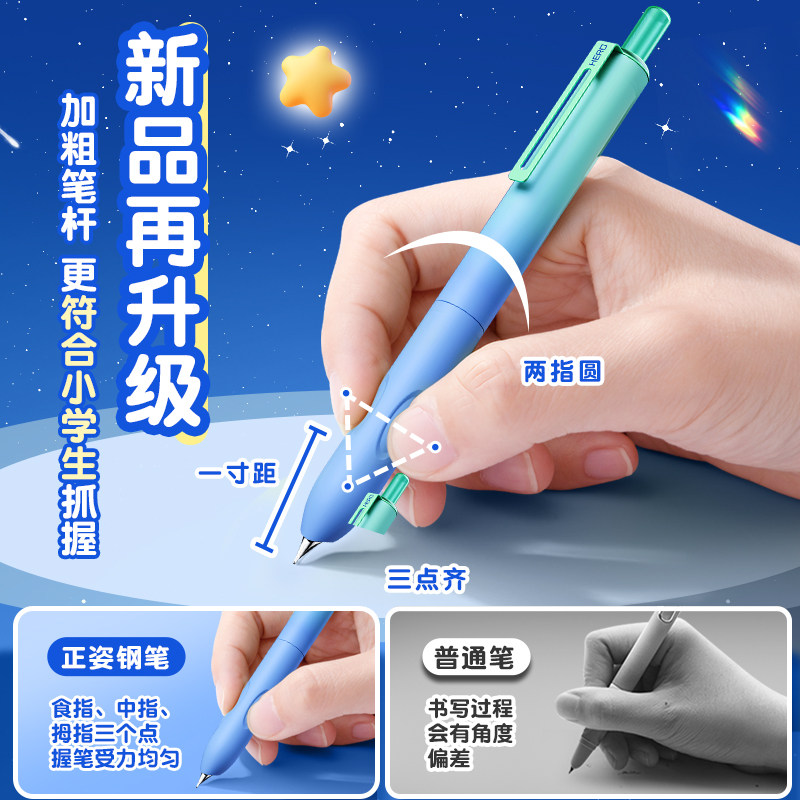 英雄牌按动钢笔三年级学生专用练字儿童男女初学者钢笔可换墨囊星际舱小学生钢笔暗尖四五年级官方正品