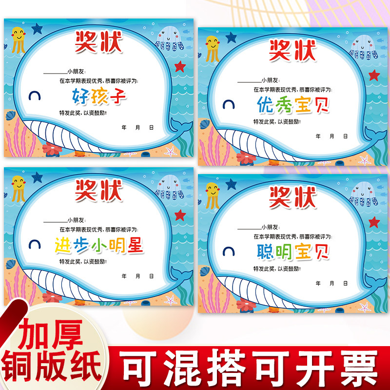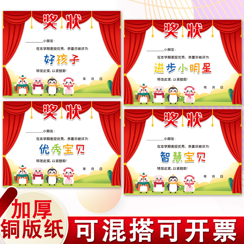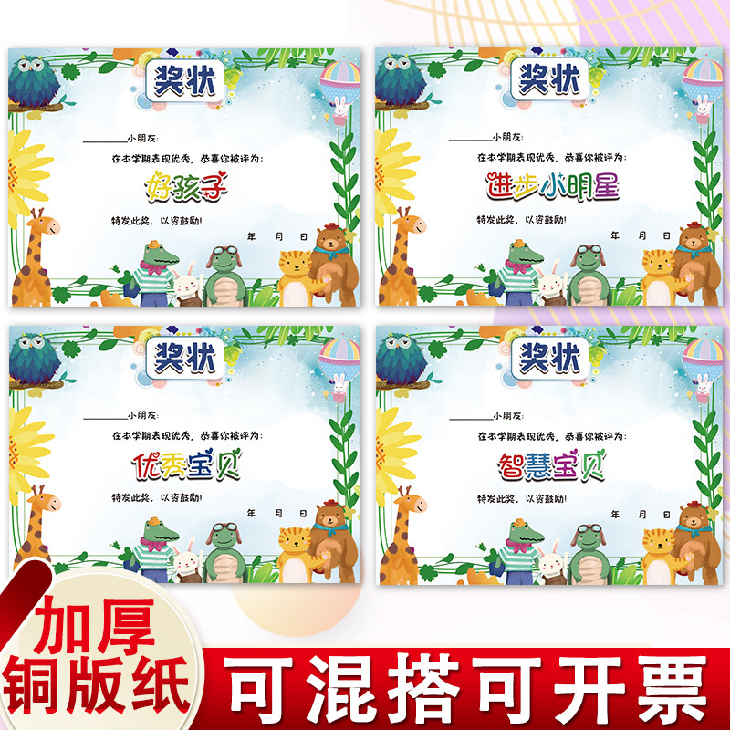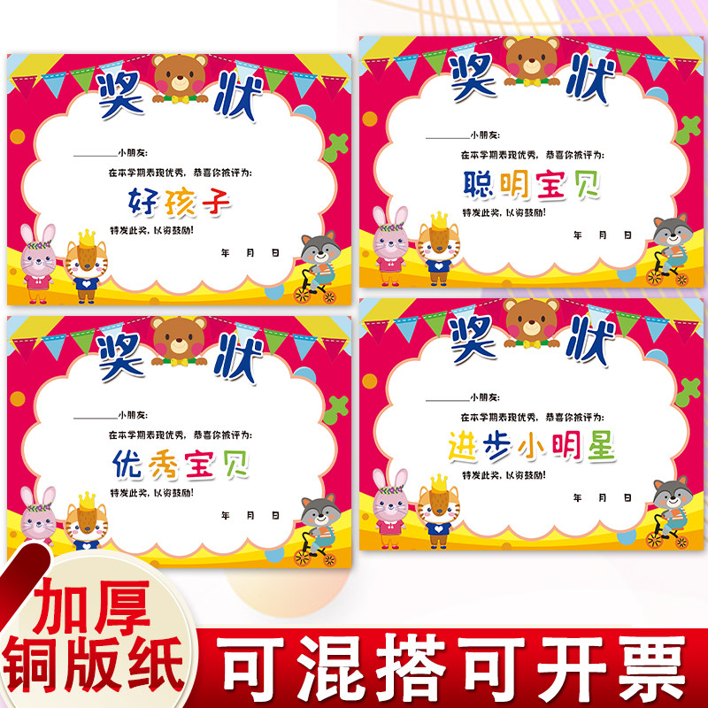 幼儿园奖状多款混装 学期好孩子奖状纸卡通加厚奖状批发 创意定制