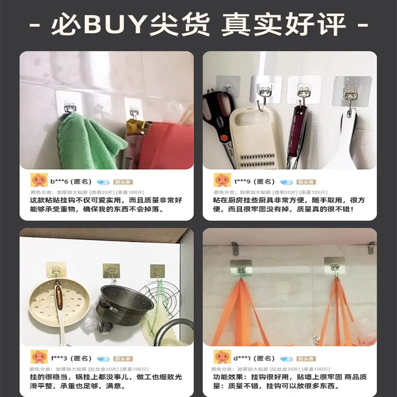 挂钩粘钩免打孔强力承重粘胶墙壁挂墙上透明无痕勾子粘贴重物瓷砖