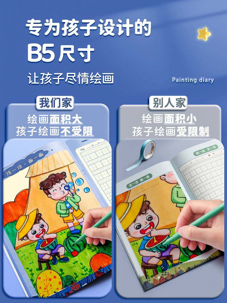绘画日记本小学生一年级二年级幼儿园看图写话儿童画图写话本一天一画田字格少儿图文女孩图画本子周记男孩