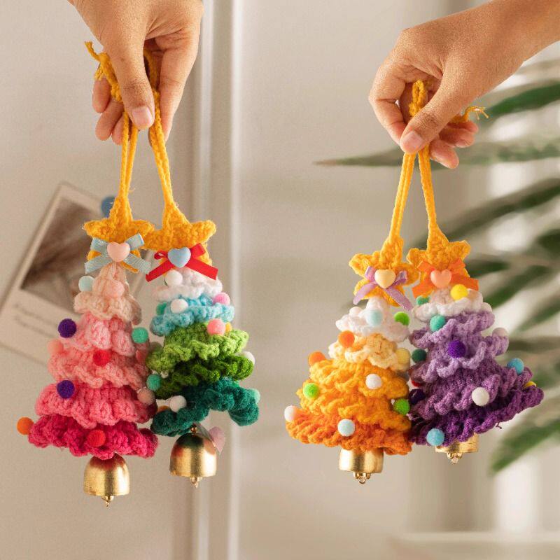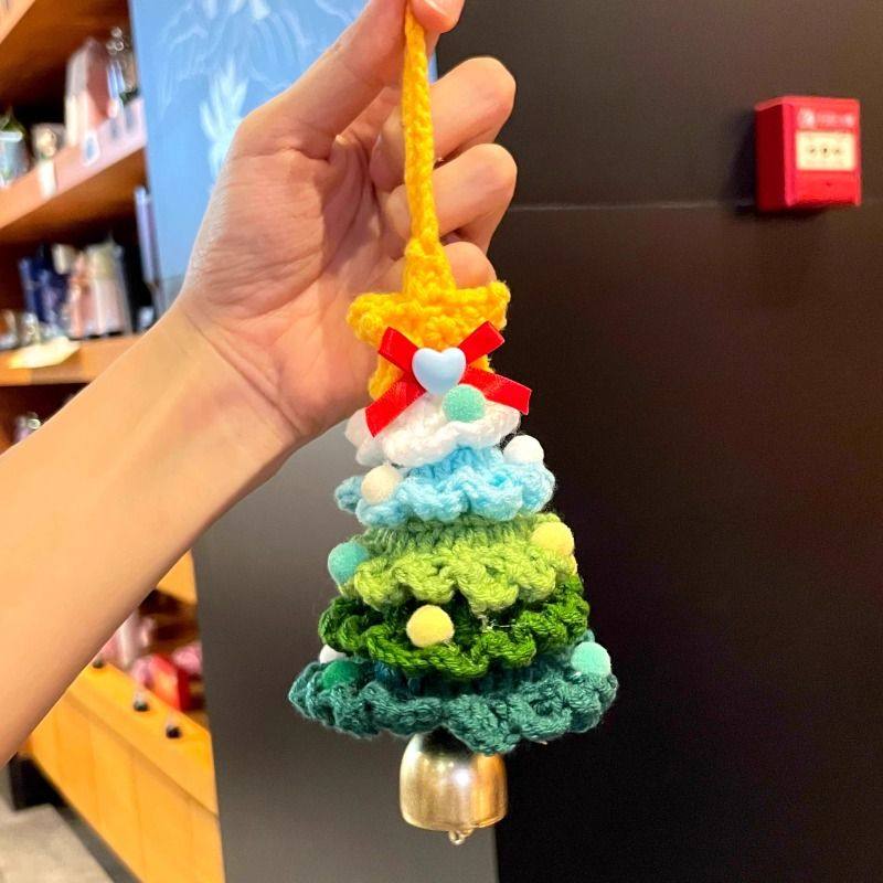 圣诞树铃铛车挂毛线手工编织圣诞节礼物装饰挂件毛绒创意挂饰氛围