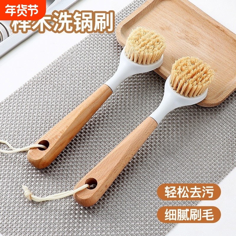 天然剑麻锅刷家用长柄洗碗洗锅厨房多功能木柄刷子清洁刷清洁神器