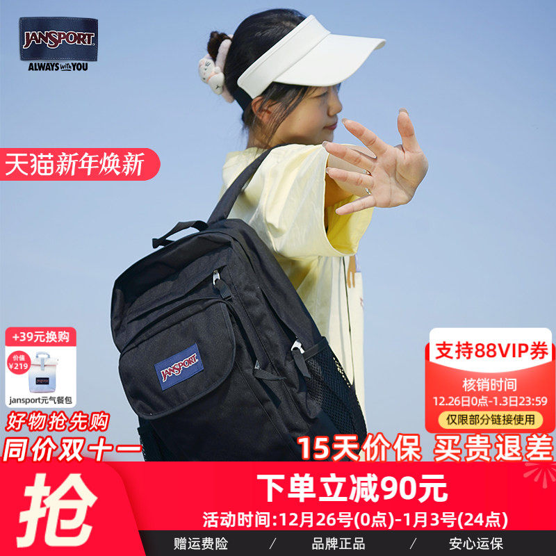 JanSport初中学生书包女双肩背包通勤户外旅行大容量男士电脑背包