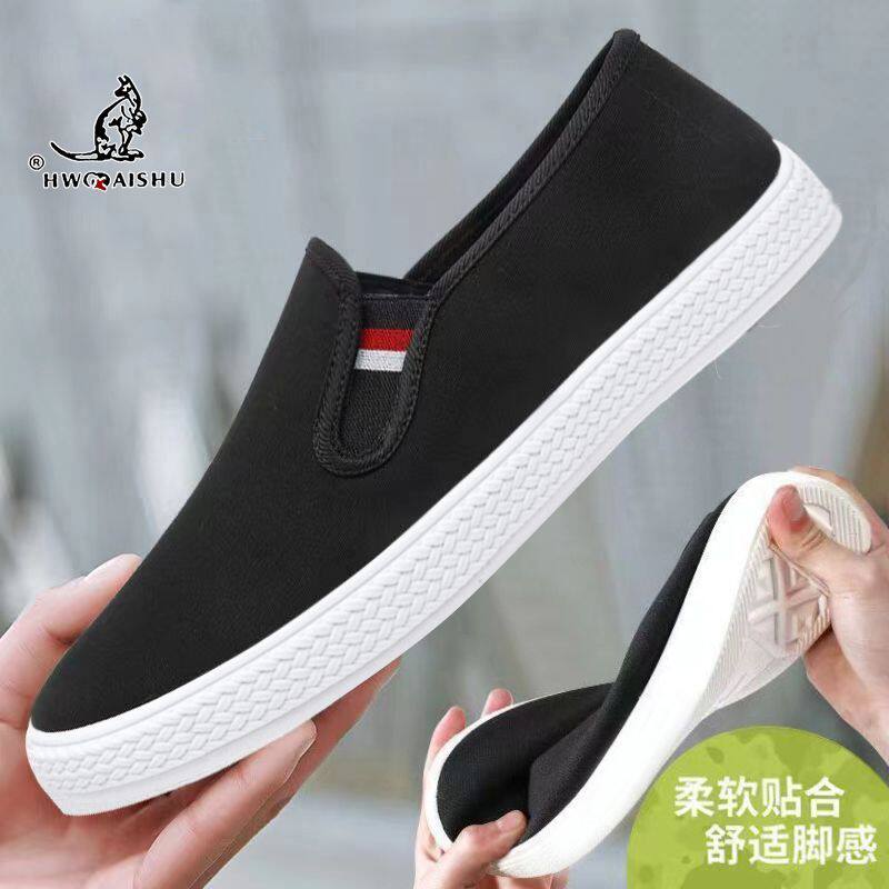 男鞋春秋透气帆布鞋男士布鞋休闲懒人鞋一脚蹬老北京大码布鞋